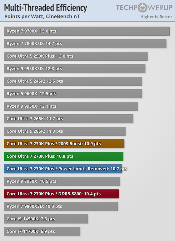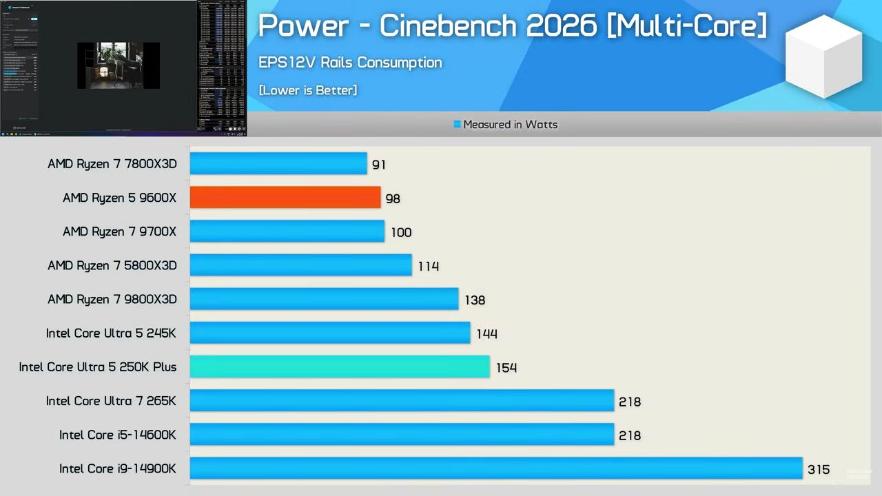 intel power draw this gen is quite high in extremely multithreaded scenarios (gaming is not one) because of the fuckton of cores. the same video as that source has the 250k/270k pulling 156/220 watts average in cinebench.