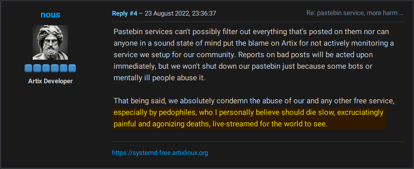Hey /g/ can you be honest please? I never cared about Arch/Artix, are those screencaps real? Are those the real devs or just other forum doods?