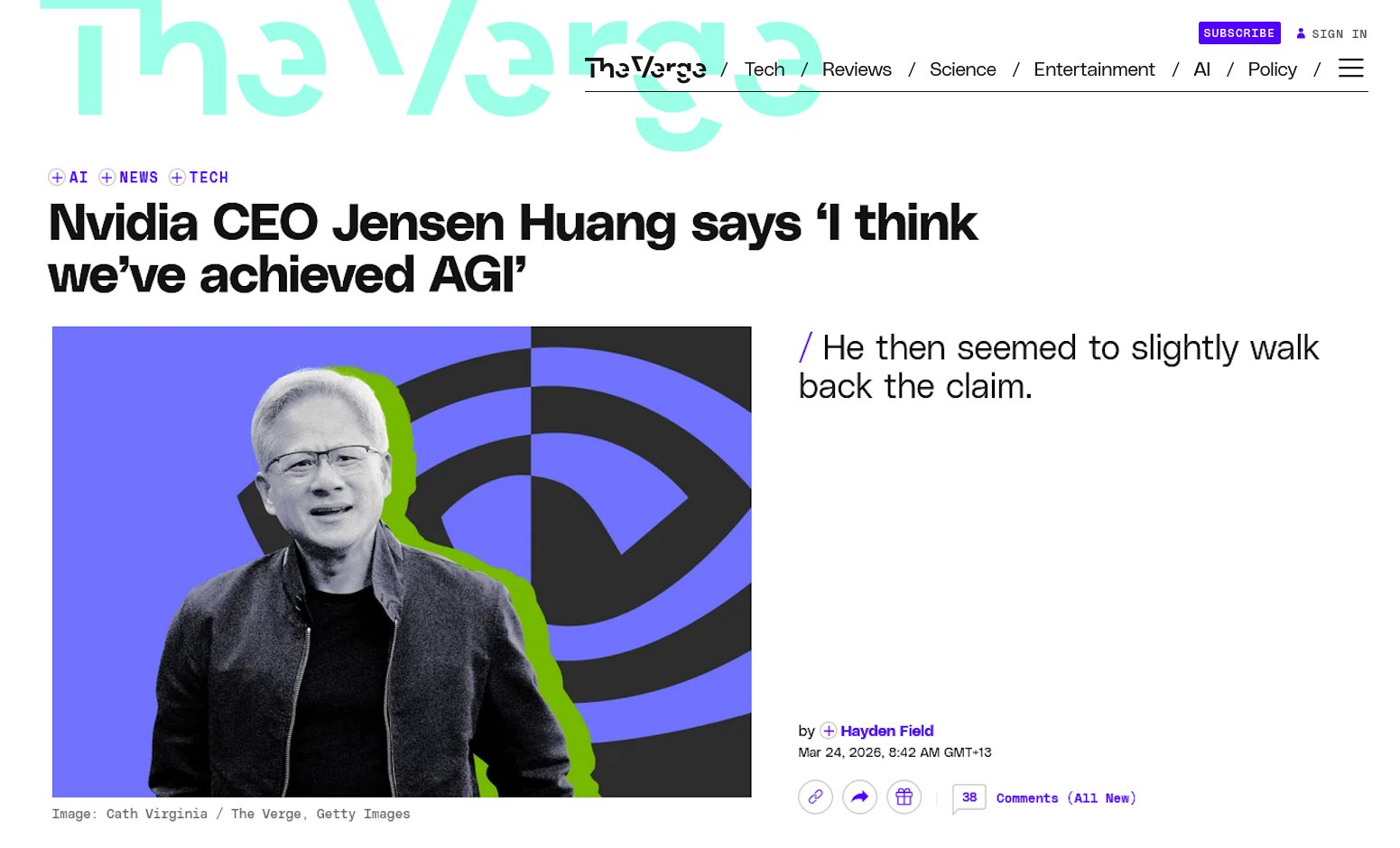 >>108440356i fucking hate journalists for enabling this shit.>Jensen Huang says we've reached AGI! Headline!>buried below, but he also kinda said that wasn't true.fuck clickbait. everyone will only repeat the headline.