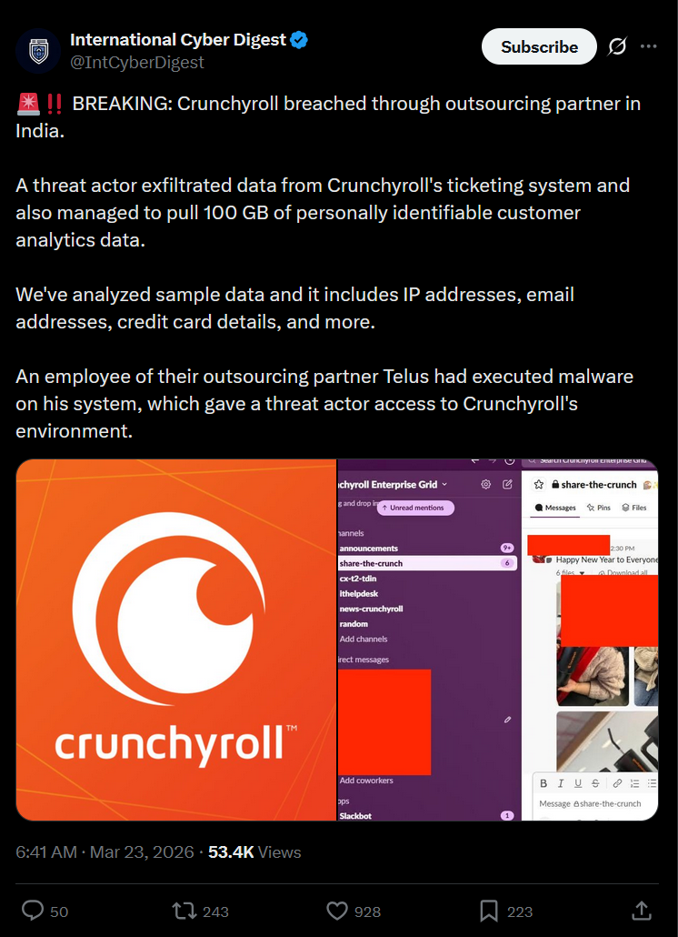 >>108440877It takes time. >Every user's detail got leaked. Anybody who has ever made an accountOof. >Why does this seem to be happening to every major internet platform every month or so?A lot of platforms outsource some portion of their data management to some third party in the third world. It was the same vector used with the Discord breach a few months back. It's retarded to pay third-world poorfags peanuts, and then expect them not to take bribes in exchange for administrative credentials. You can't fucking trust them. Stop.