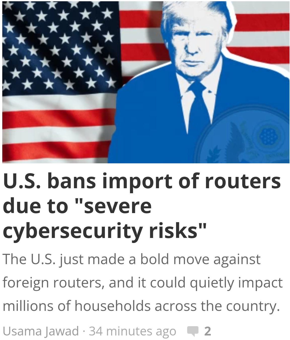 >>108443482This is what I think it will boil down to: you bring a router into the country? Install the Trumpware which will send all of your memes about his tiny hands and micropenis straight to the NSA to put you on the naughty list.Will be very useful in the upcoming elections.