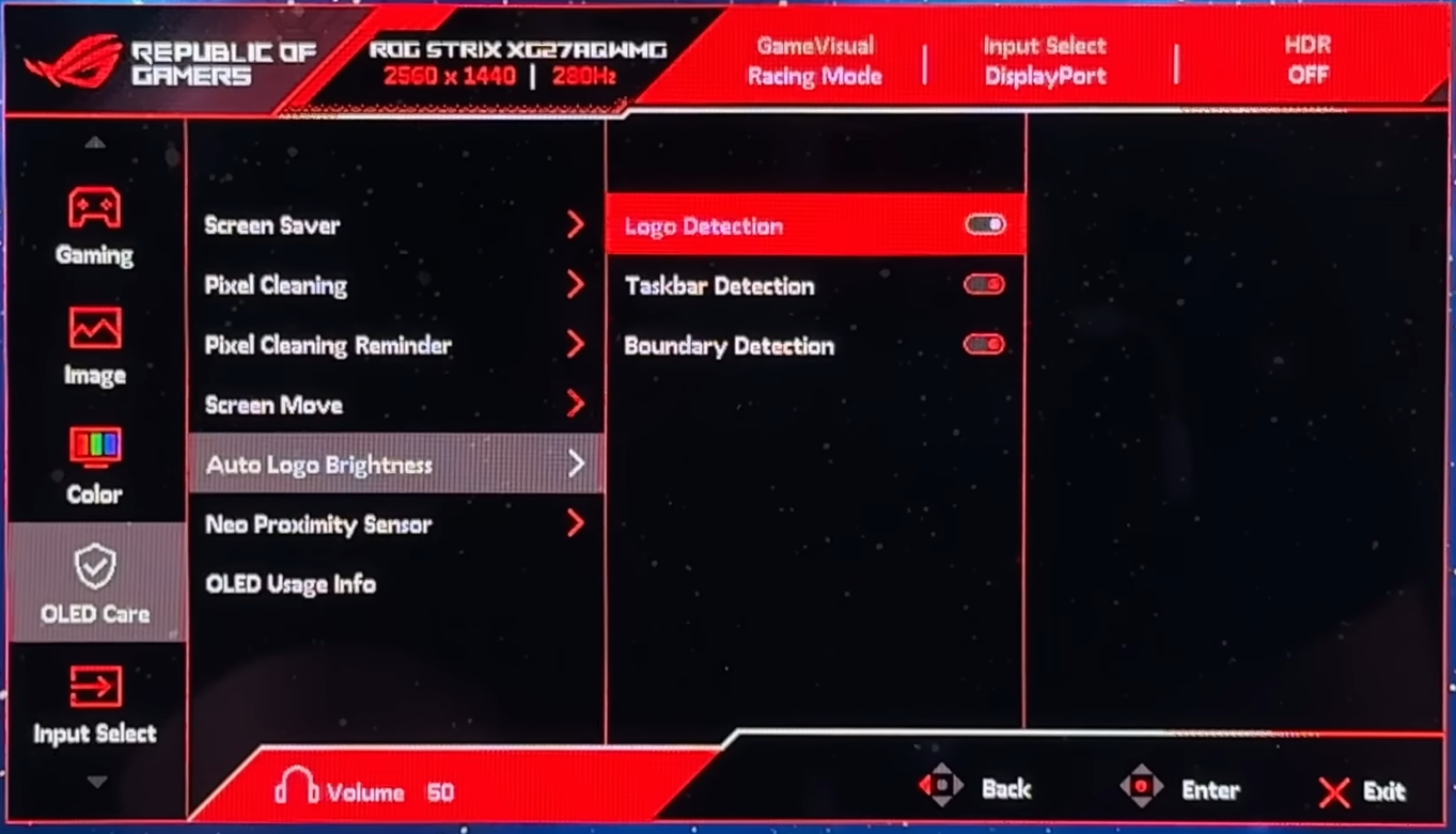 and here is my Monitors menu.You can turn off logo detection, but taskbar detection and boundary detection you cannot toggle off anymoreI guess they had to RMA a few too many panels due to taskbar burn inIts a bit noticable in the web browser with the tabs, id like to disable it but whatever
