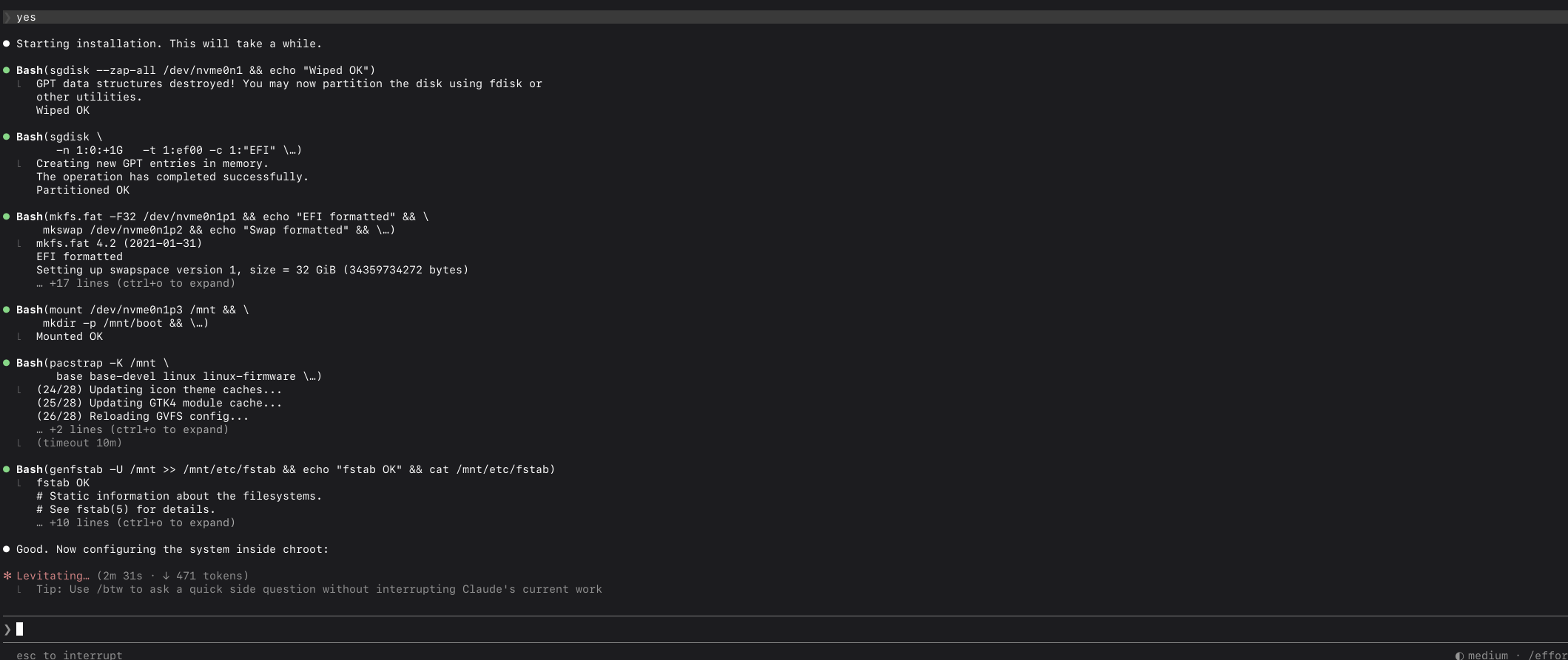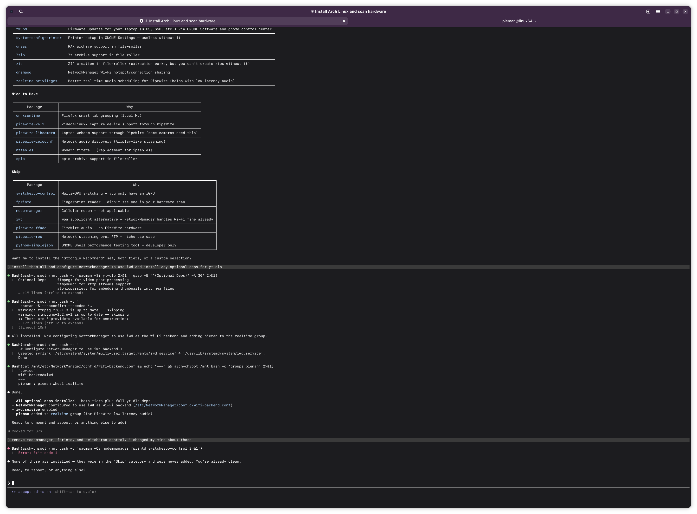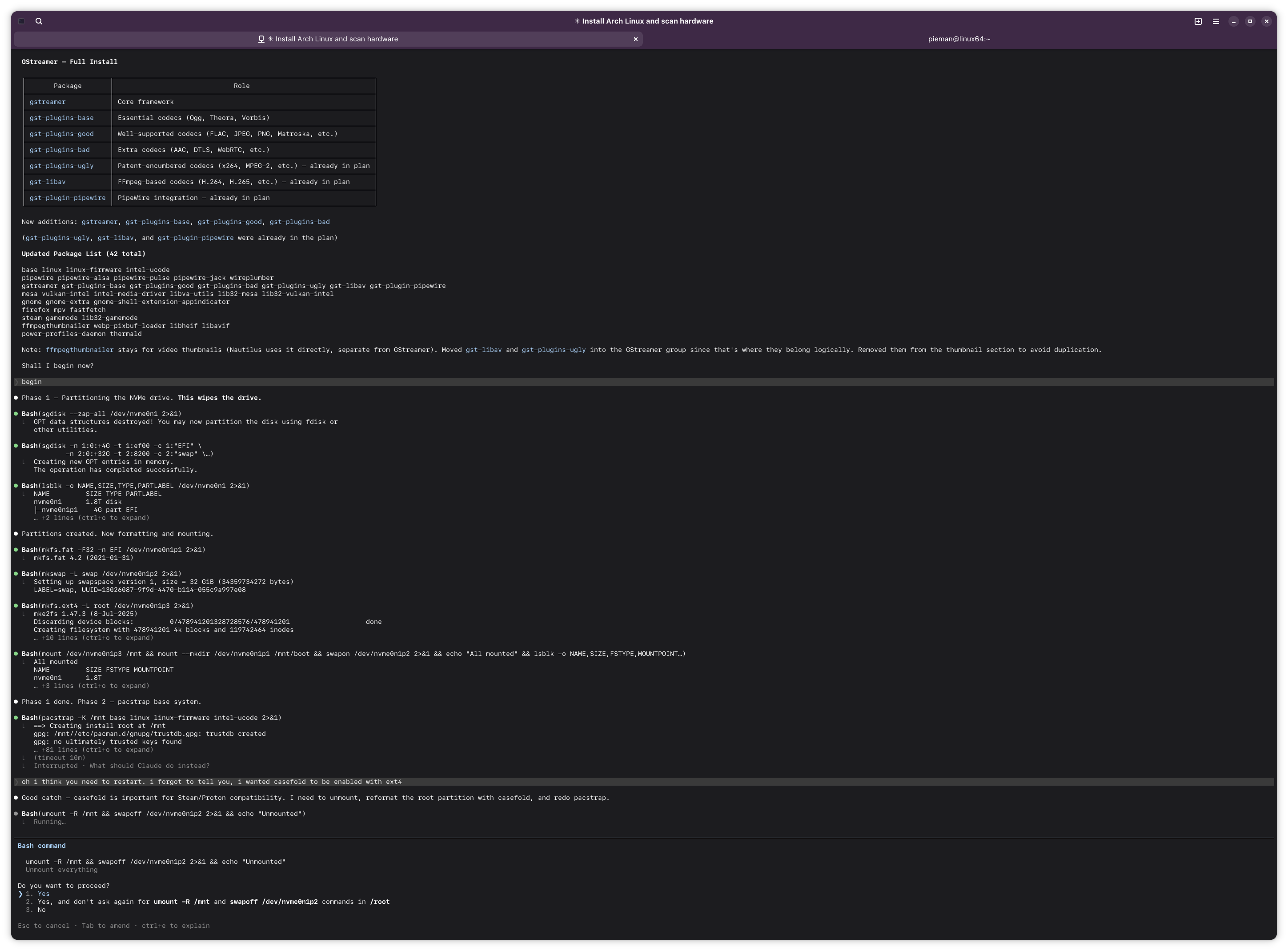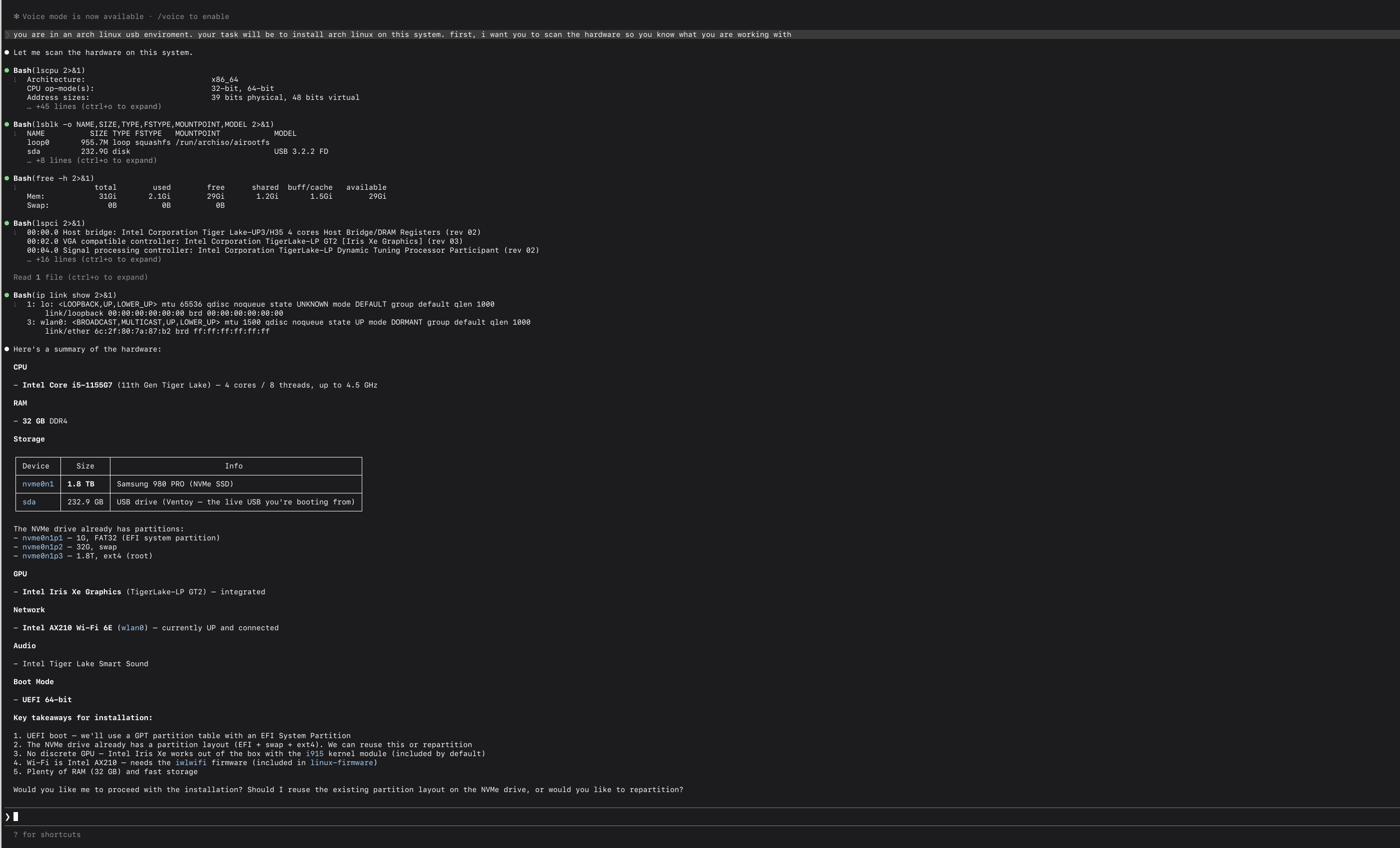 i am using claude to install arch linux on my laptop. what could go wrong? i have him ssh'ed into my latop.
