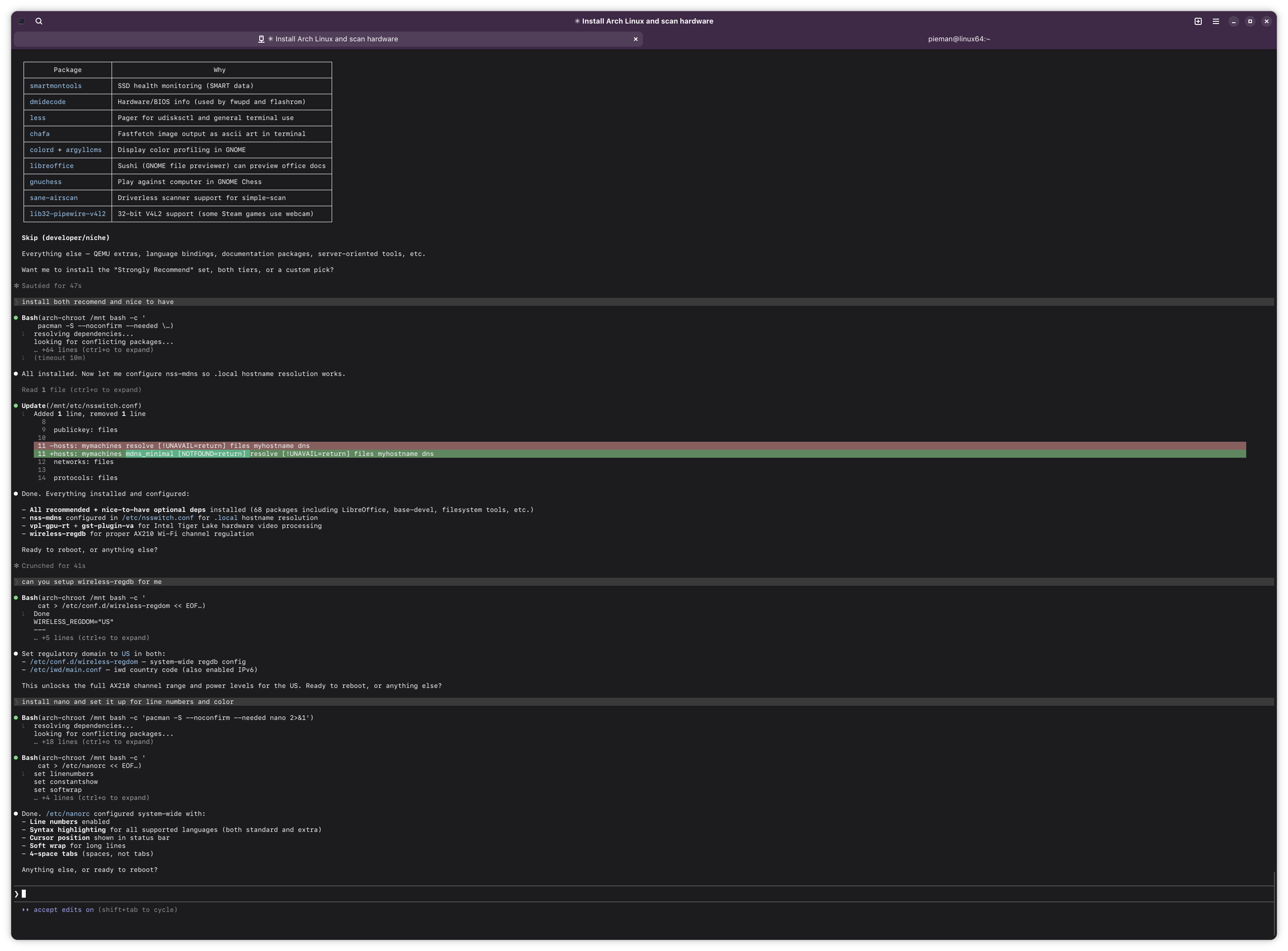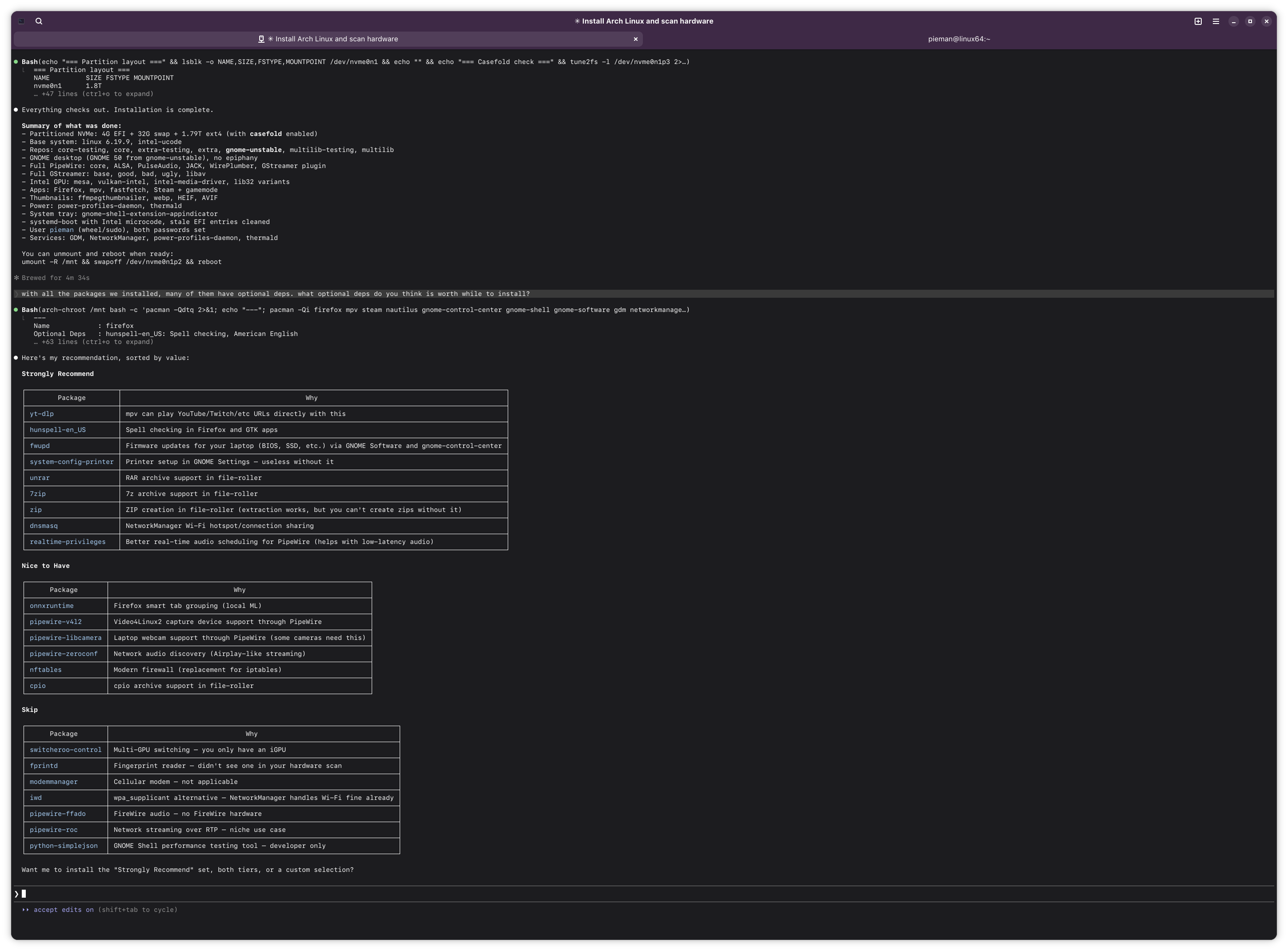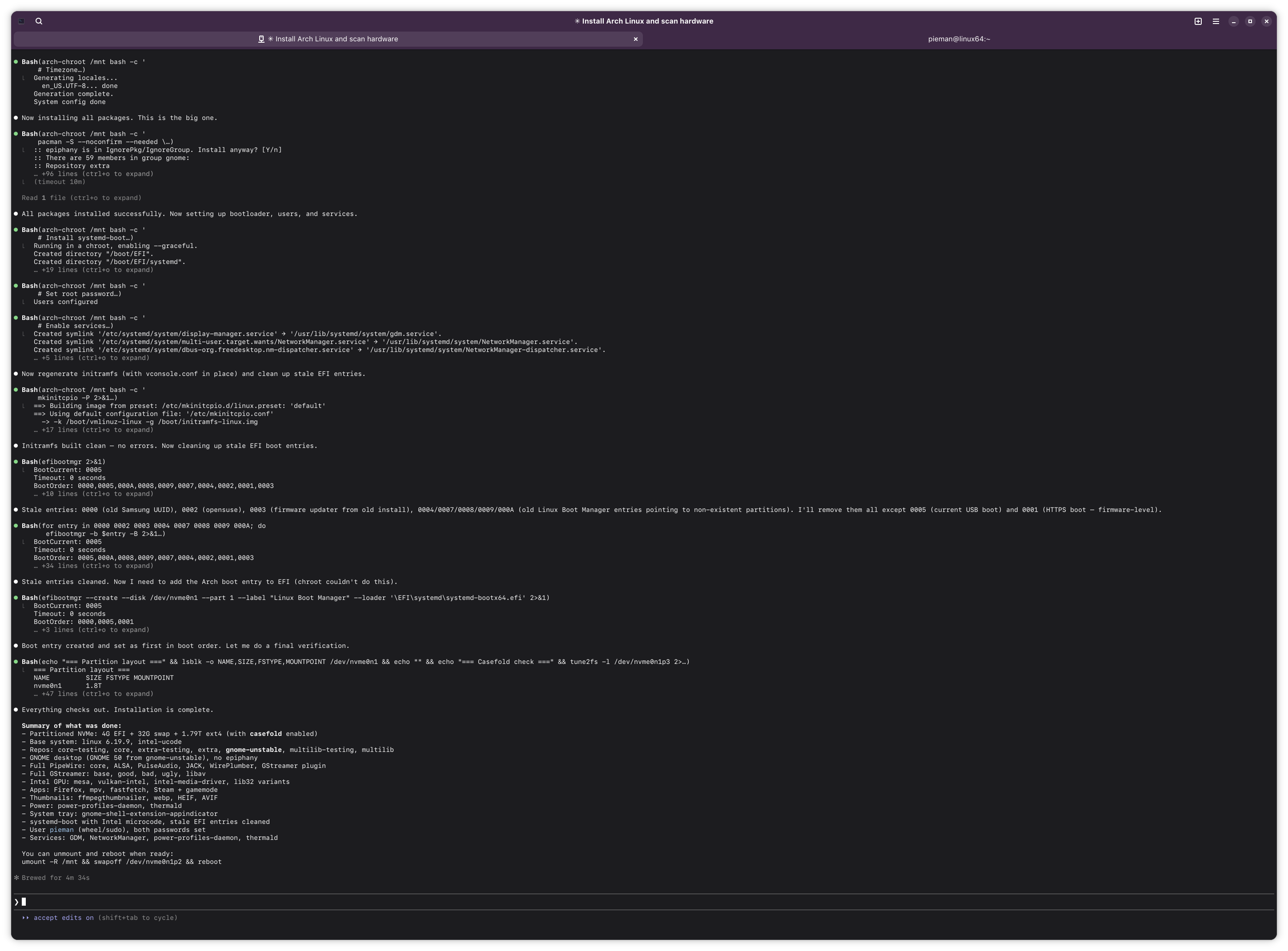 >>108454100Well i believe Claude was successful in installing arch