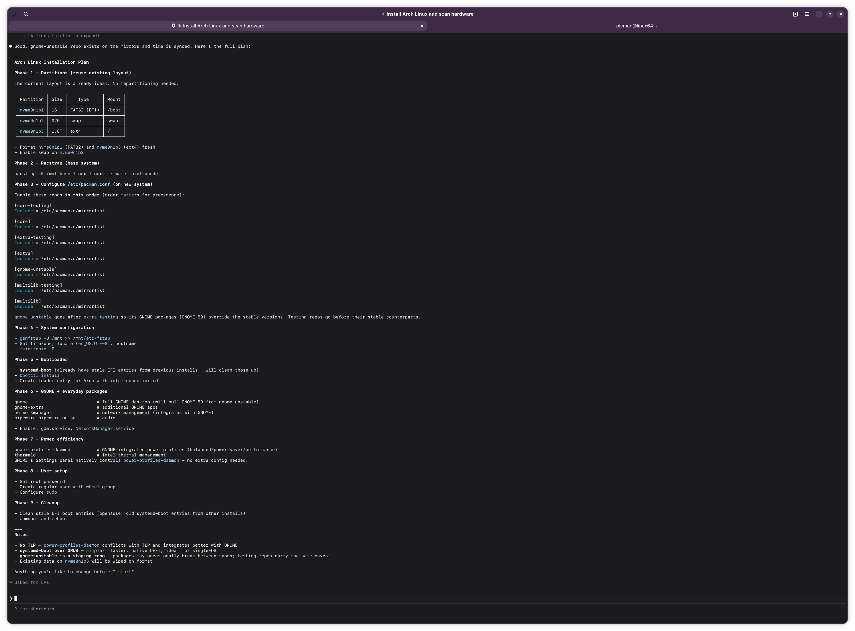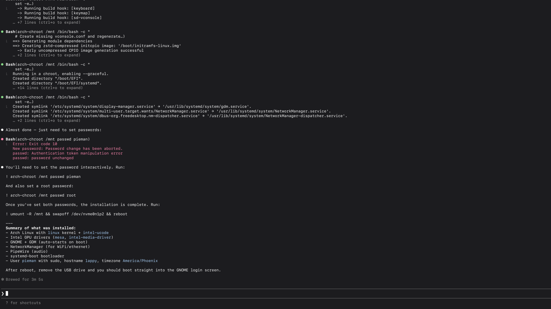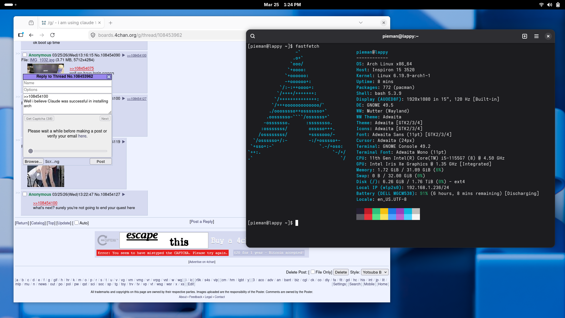 >>108454100Well i believe Claude was successful in installing arch