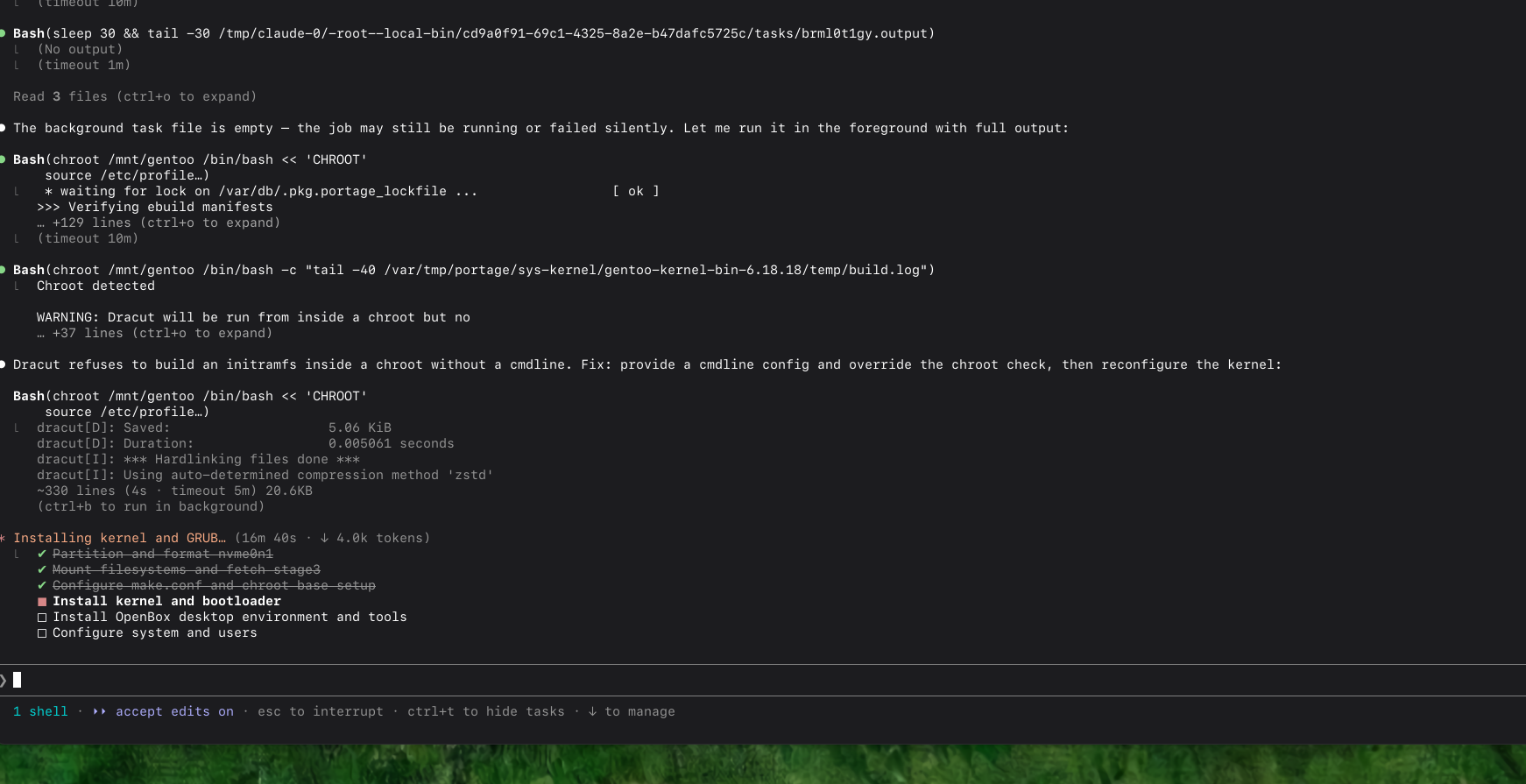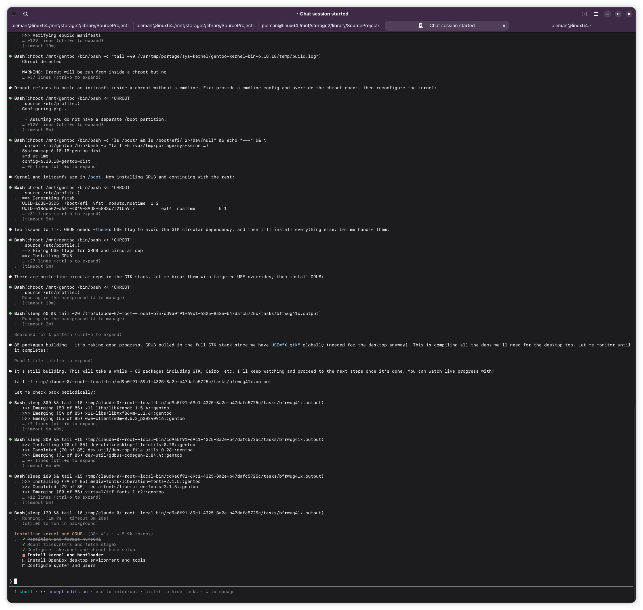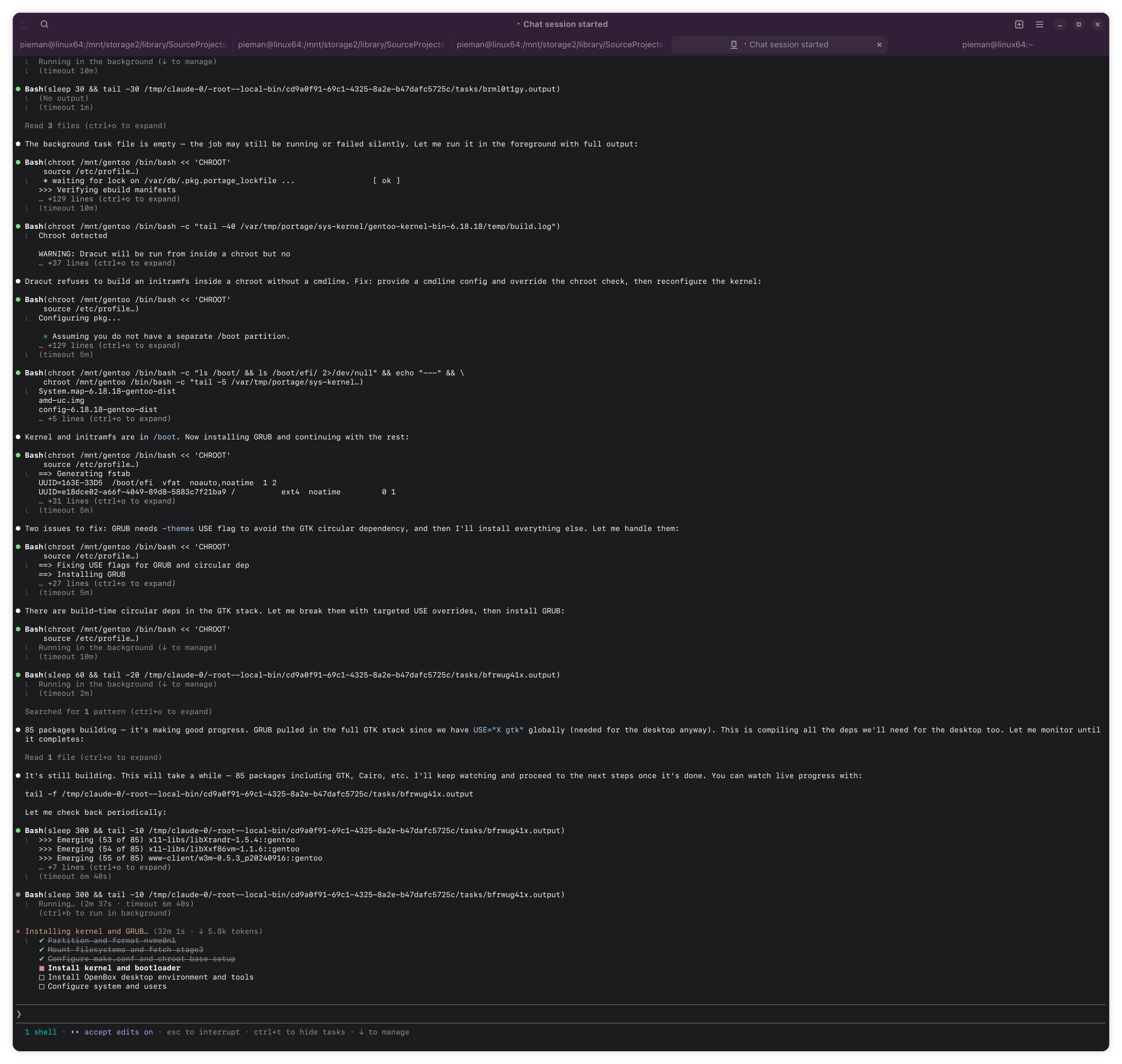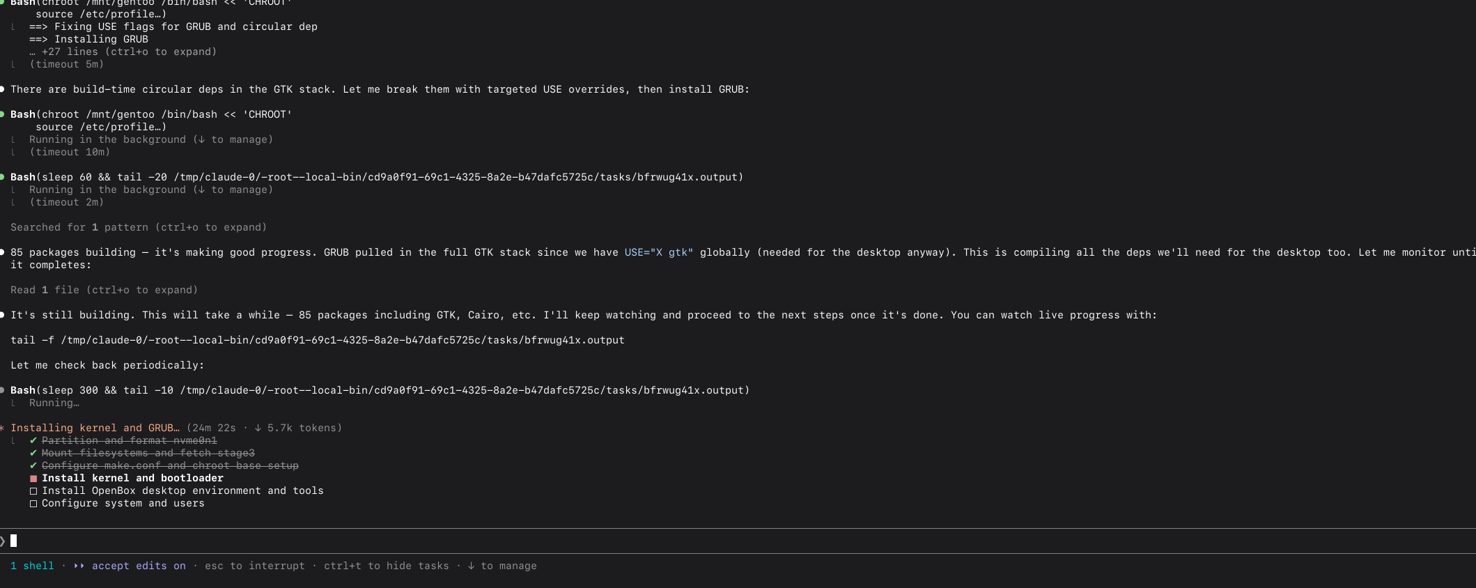 >● Need to rebuild with the fixed version string so the kernel and modules match. Most files are cached so it'll be quick: sigh