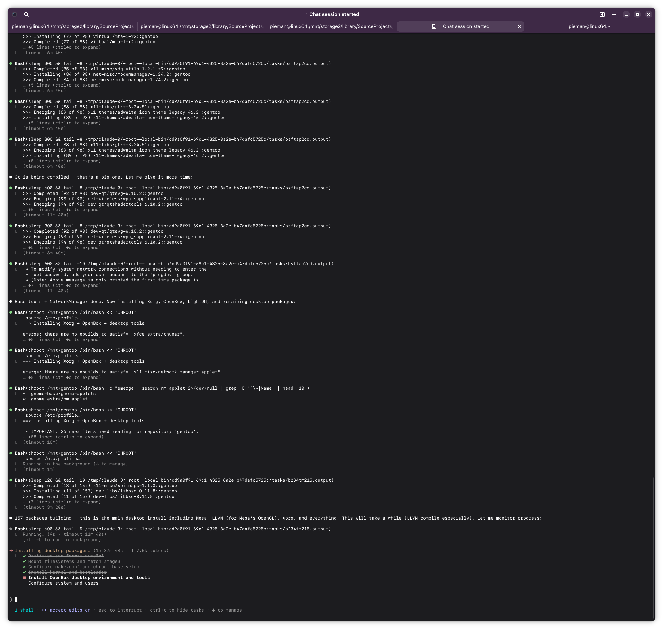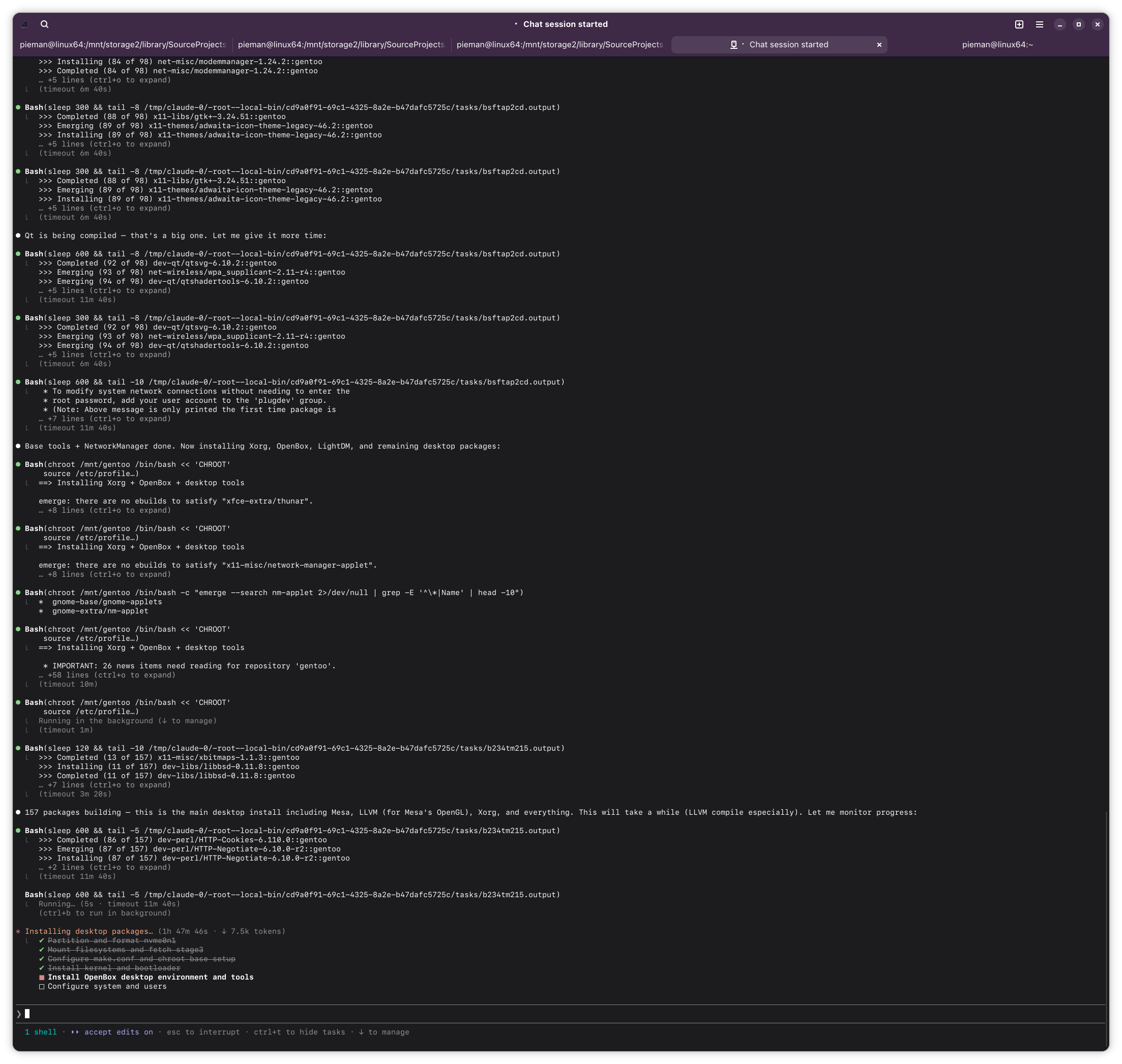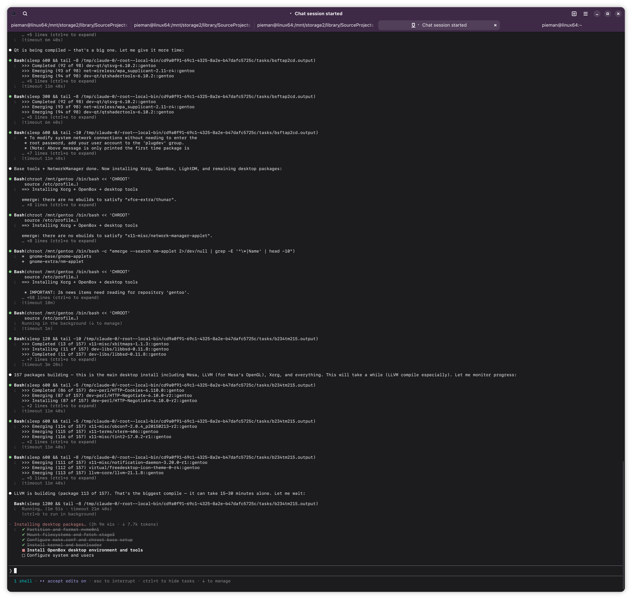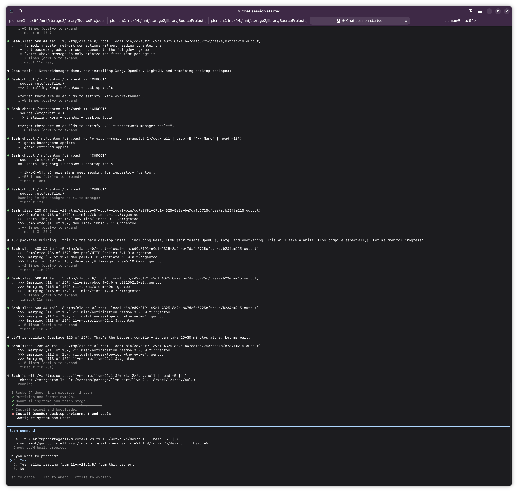 >>108456028can't really do much while compiling, and it evidently has an idea how long they take given it points out llvm as taking a while