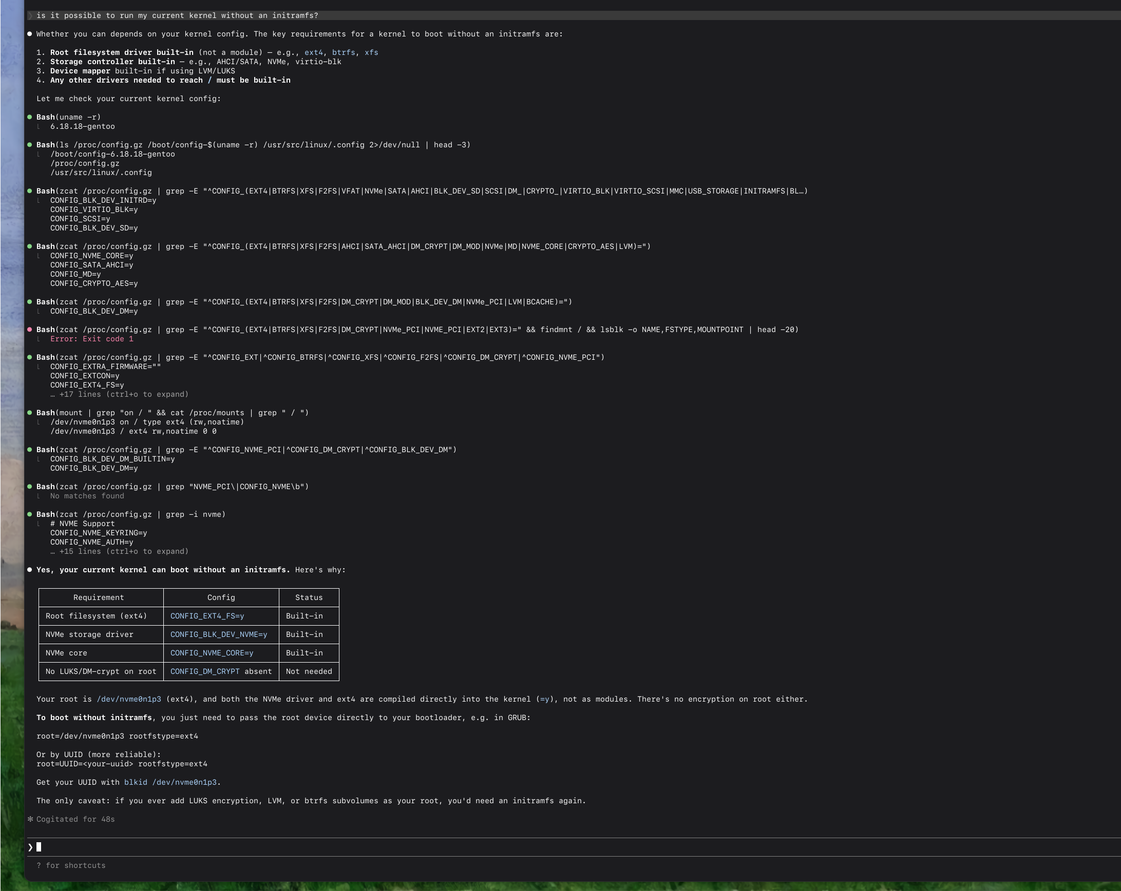 >>108456445well, i don't advise using claude for custom kernel configs atm. but for installing linux? so far, i would say, yes. pretty solid experience tonight. did both arch and gentoo. alright time to take a break. thank you for attending my ted talk.