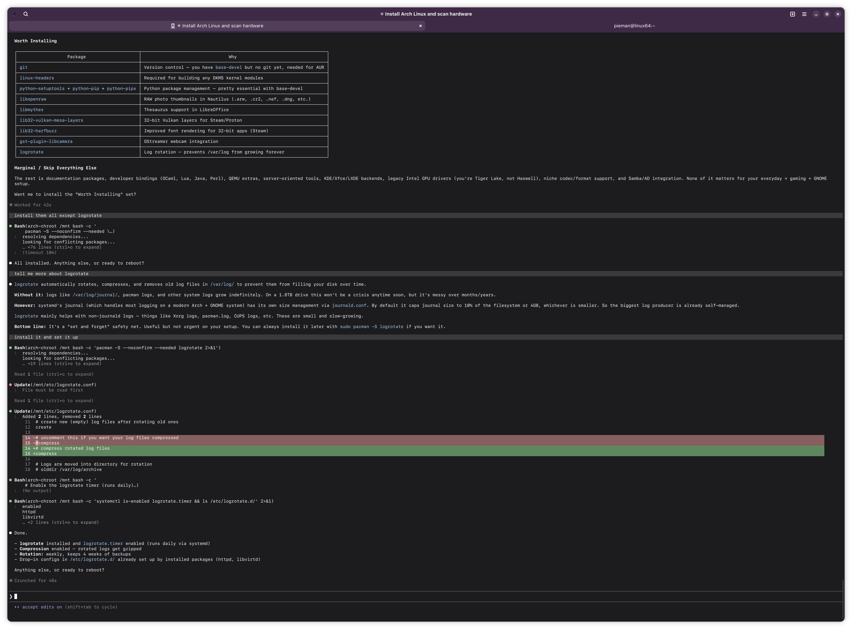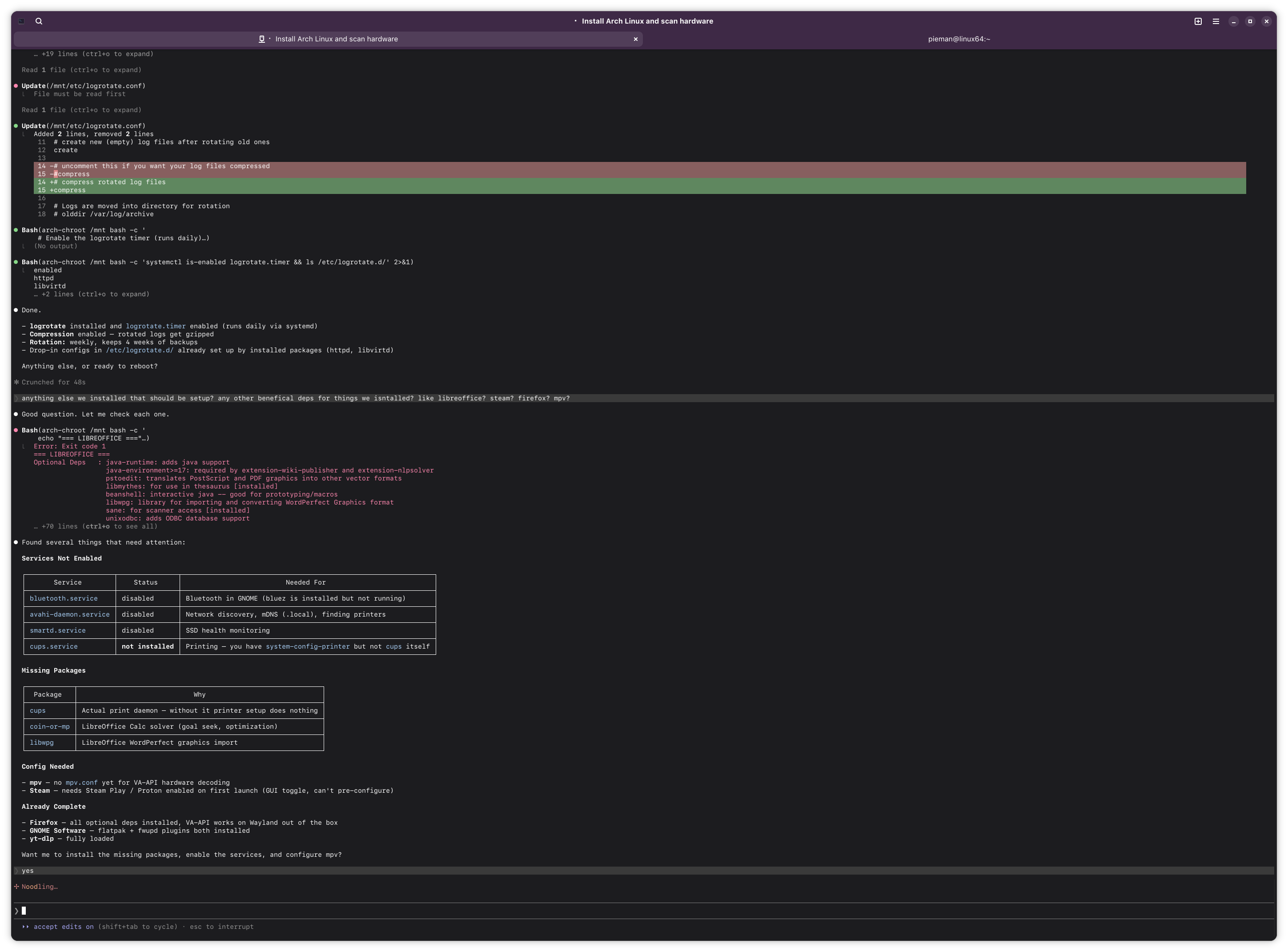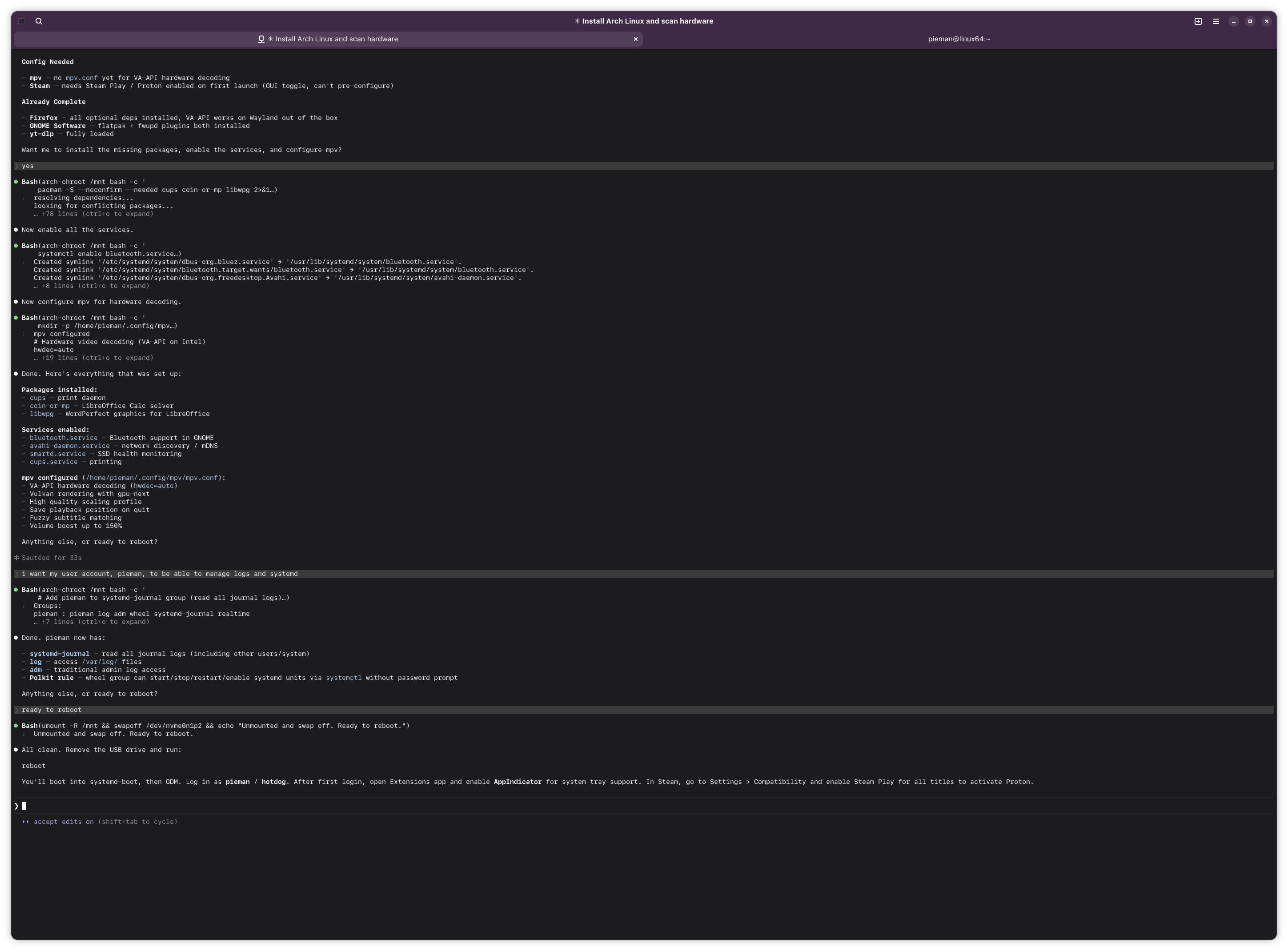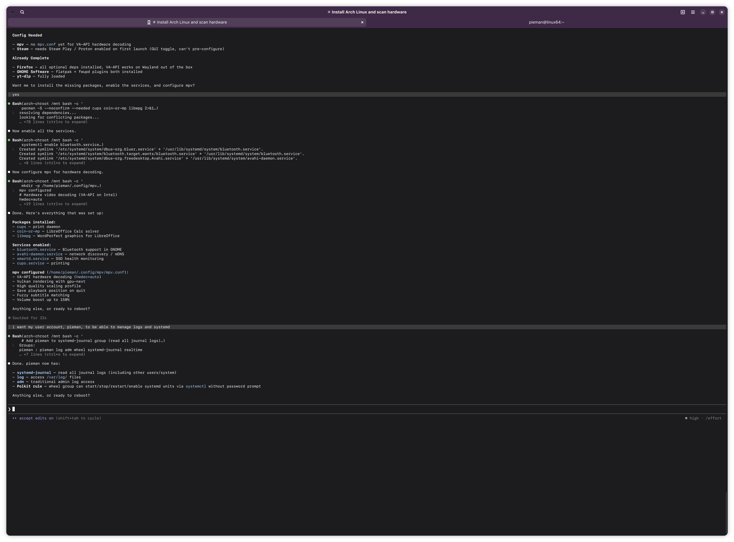 >>108454950yeah, claude did setup everything correctly. he did the standard arch wiki install perfectly.