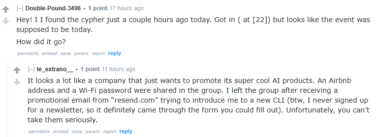 >>108454782>It points to a subredditStop lying, and the real Cicada 3301 hasn't posted in a decade.