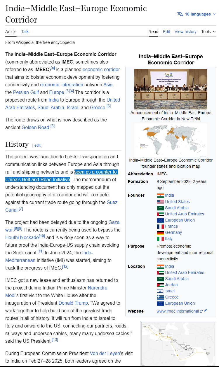 >>108455970>Did you know the Core Ultra 270K was designed in India?Do you realize the Europeans and Americans are setting up India to become an industrial & technological counterweight against China & to a lesser extent Taiwan?These western nations want to reduce their reliance on Chinese/Taiwanese industries and still want access to competitively priced goods.That's why major conglomerates are building up manufacturing and R&D in India.But those Sandeeps need to rapidly build up & improve their infrastructure.The people who control these macro decisions don't give a shit about the ethnicity of their drones.https://en.wikipedia.org/wiki/India%E2%80%93Middle_East%E2%80%93Europe_Economic_Corridorhttps://en.wikipedia.org/wiki/China_Plus_One