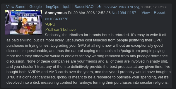 >>108466879It's more important people know thst nvidia is evil and their drivers are buggy shit that can't run a cartoon children's game without stuttering than to have bloat like thermal paste recommendations Get real