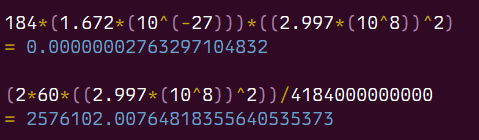 >>108462039Its simple, E = mc^2. The rest mass of a proton is about 938.27 MeV/c^2, therefore 92 antiprotons would be 92 * 938.27 MeV/c^2 * c^2 = 1.383 * 10^-8 J which is literally nothing. Realistically of course you would need real mass to annihilate with so you woudl do 92 protons and 92 antiprotons, so about 2.8 * 10^-8 J which is still nothing.