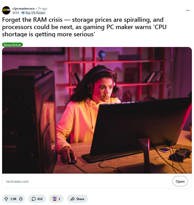 nonsense, Cpu stocks are overflowing. local retailer gives away ryzen 9950x3D for like 400 yuros