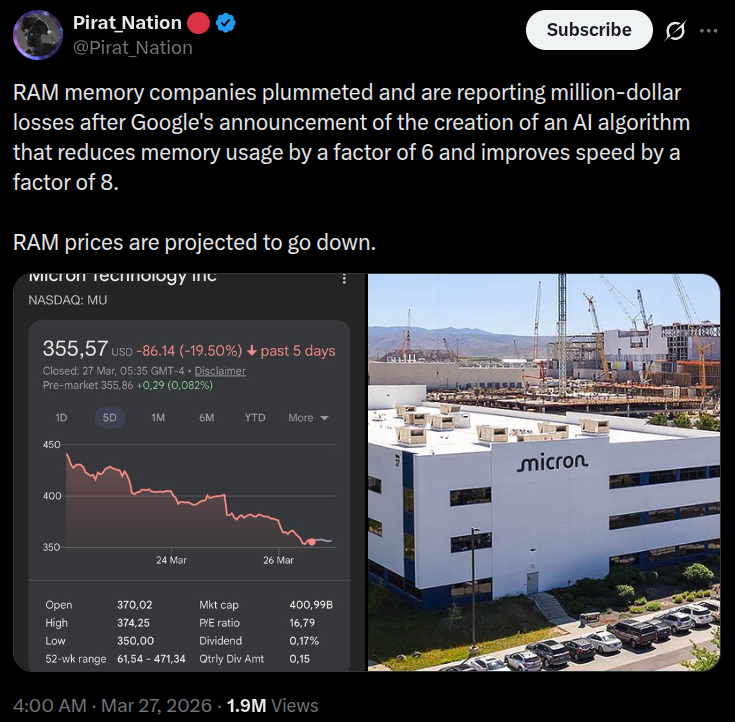 Are we ready for more gains and affordable ram?https://arstechnica.com/ai/2026/03/google-says-new-turboquant-compression-can-lower-ai-memory-usage-without-sacrificing-quality/