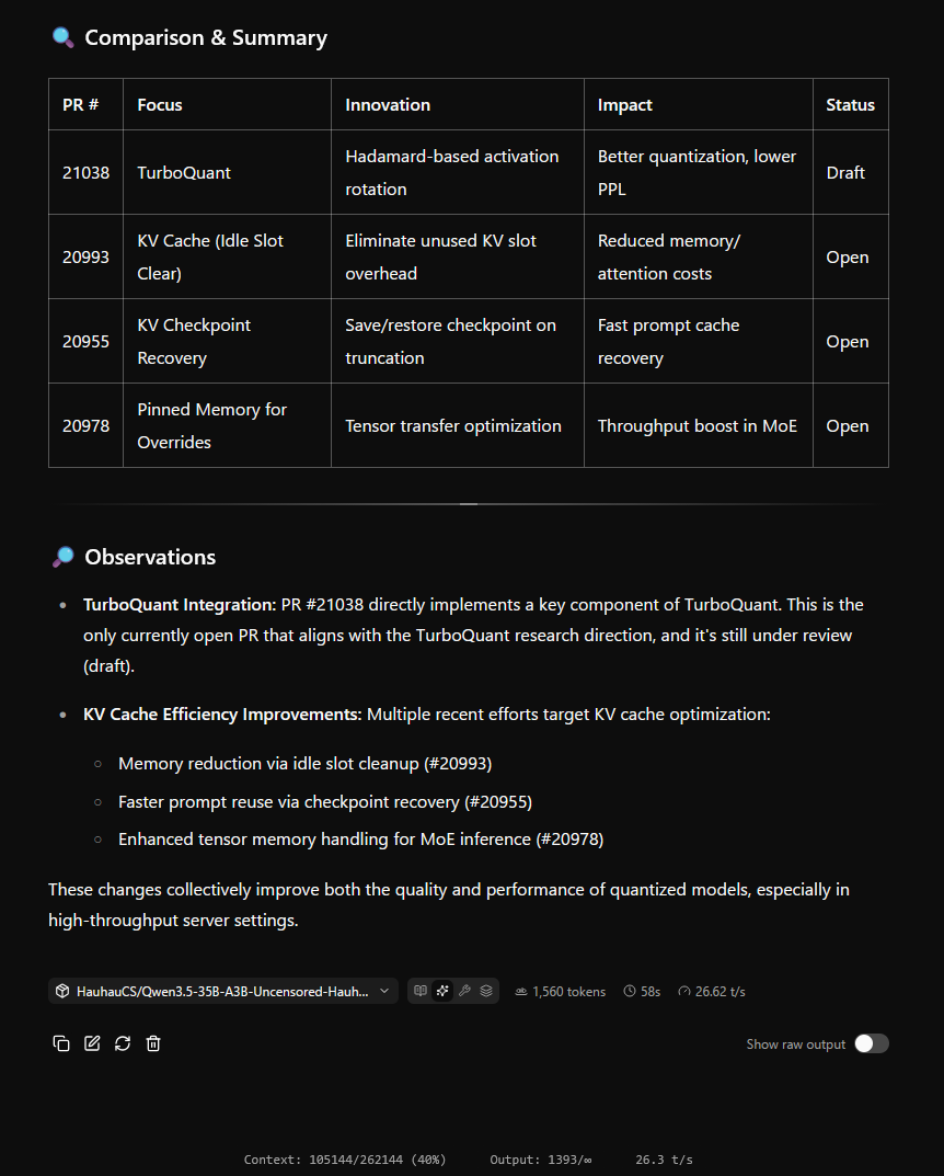 >>108466284ok now fetch the data from the link, find the actual PRs, get a summary of each PR and the findings therein.