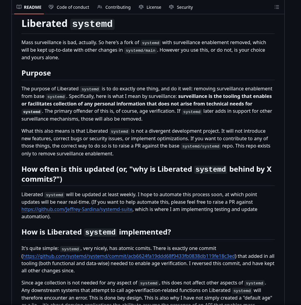 >Systemd Forked to Remove Age Verification