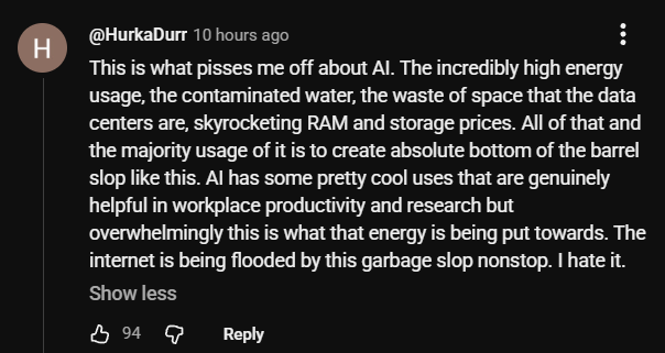 >all the comments on the internet seething about AI and the heckin waterBest invention ever. Absolute goldmine.