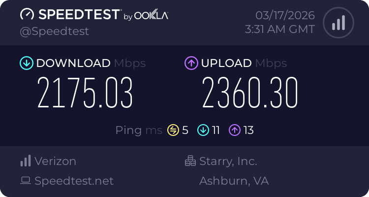 >>108464153It's crazy to think that the bottle neck these days isn't our Internet pipes but the consumer grade hardware routers we have. I had to upgrade a lot of stuff within my house to make sure every device was getting a decent speed. WiFi is always shit and if you want decent speed it's wired or bust. I had to settle on Moca which is better than nothing. Heck I ended up getting a nano pi r4s because it can handle 1gbps packet shaping. Anything higher than that you need to get an x86 mini pc to do that type of work. Check your router hardware that might be the bottle neck. WiFi of course is always shit so if you can't wire it, you might just be better off paying less since you'll never get the advertised speed.