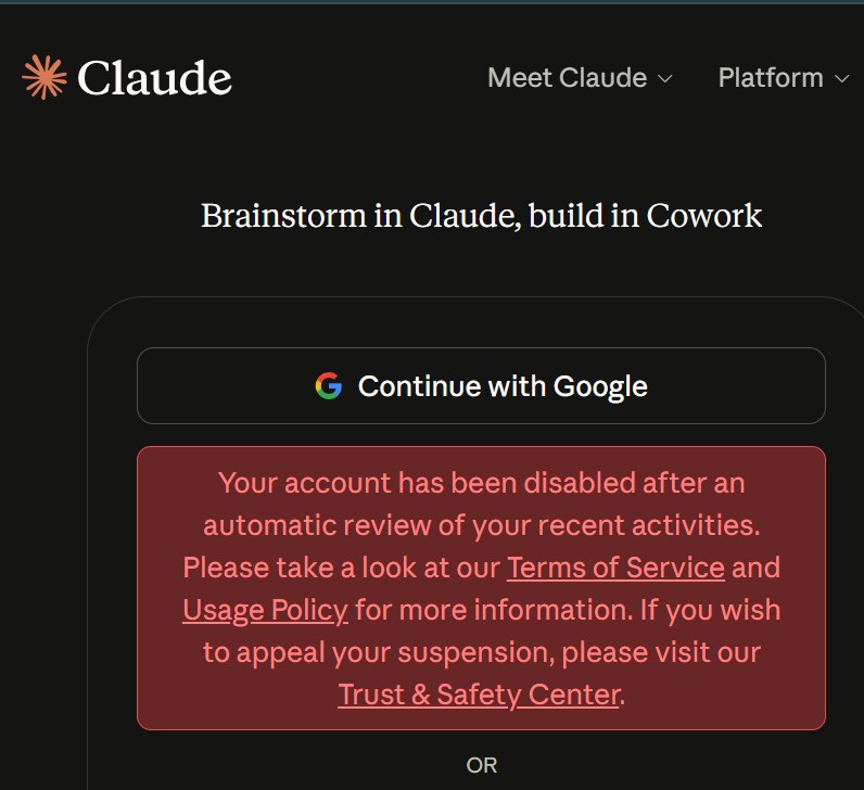 idk why they banned me no reason was given. I've been building a language glosser and I have an automatic loop that calls claude -p processes to analyze sentence glosses for potential issues. I told opus to keep working and looking for ways to reduce overhead on the loop and I think it extracted my subscriptions oAuth tokens and used it to call the API or something (which I didn't tell it to do). That might've been what got me banned or it might've just been an autoban from too many instances that looked like a farm, or I might have gotten mistakenly flagged as using 3rd party tools when I wasn't, or it could've been the hardcore celebrity fantasy erotica I had opus write 3 months I'm not really sure