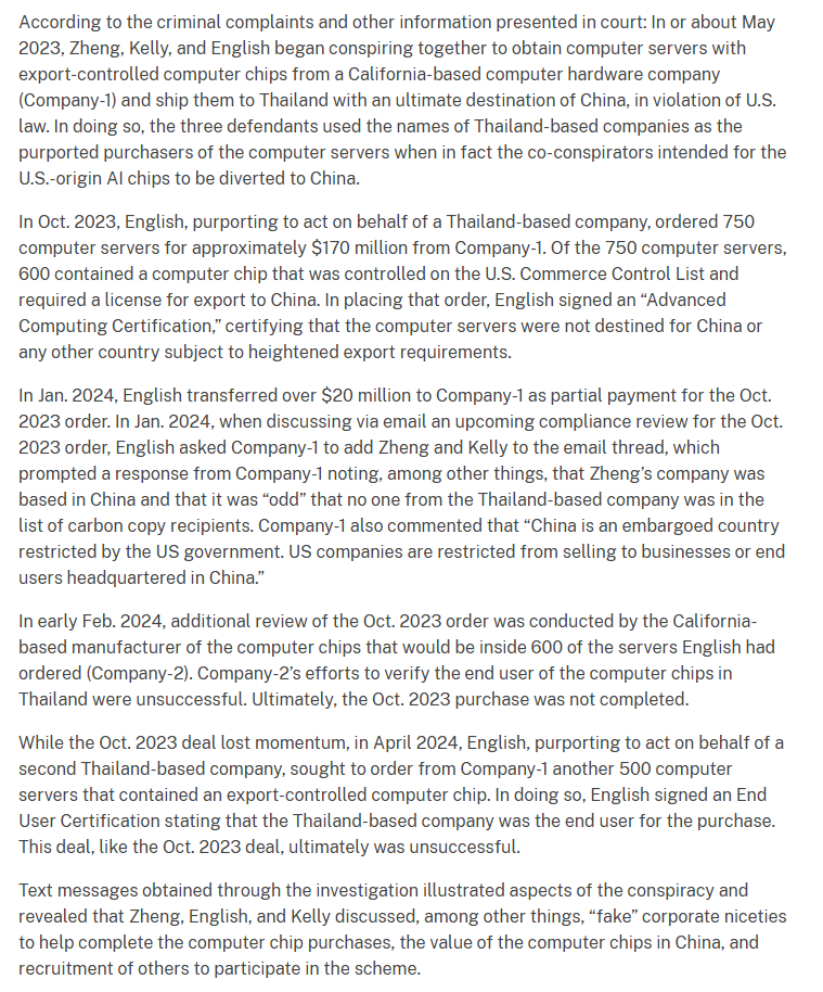 >>108470193It doesn't at all and in fact if you look it up they just smuggled technology not anything related to any AI.To be quite frank the cards could be getting used by the CCP personal AI system.