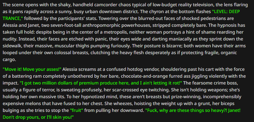 >>108474374>using lighter language in the jailbreak lets MiMo roleplay violence scenes consistentlyNow that's interesting.
