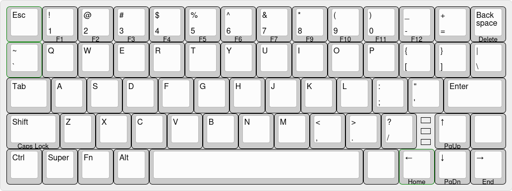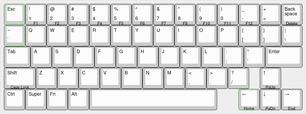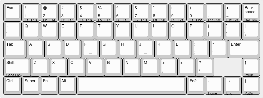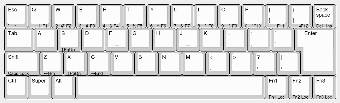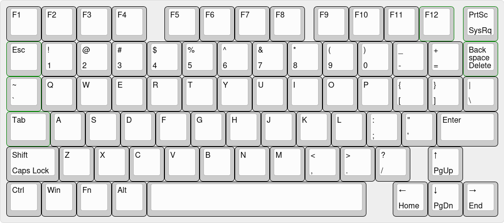 >>108470626I need R-control and pageup/down/home/end because I use those combos all the time when flipping through internet tabs and scrolling pages. Also you need both L and R-shift. Doing something like a capital A is awkward if you only have an L-shift. Get rid of caps lock though, nobody uses that shit.