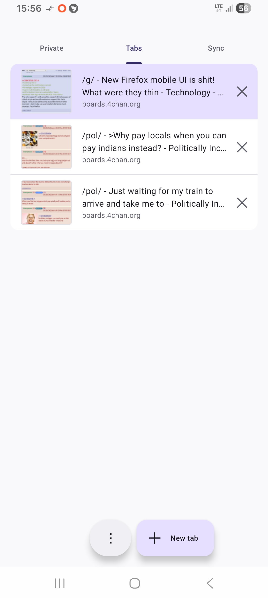>>108470760>Fucked up the UI>Fucked up the notifications service>No webgpu support in 2026>wasm multi-threading is still aids>still far behind chrome in web-platform-tests>dumbass new logo removes the FOX from FirefoxThe only reason I'm still using this piece of shit is because of ublock origin and mobile extension support. But that's stupid. I should just be blocking ads at the network DNS level and I don't really use userscripts/extensions much anyways. Fuck Firefox.