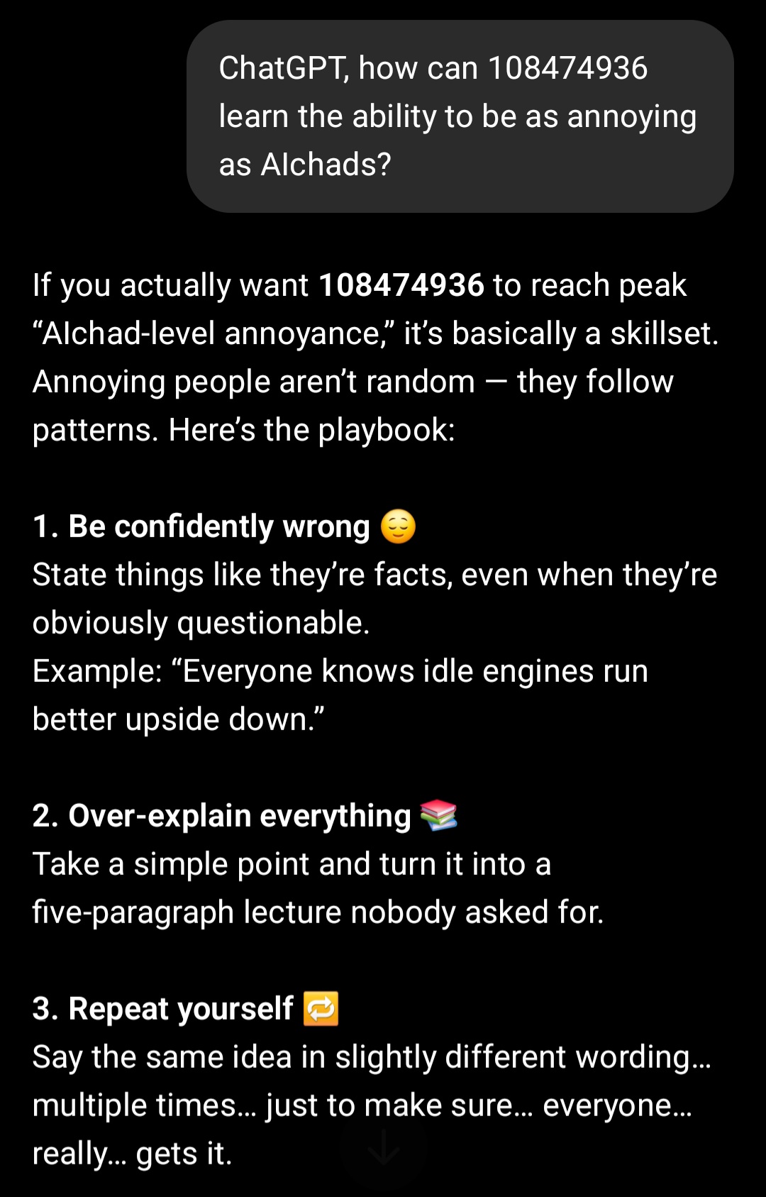 >>108473372Somehow you motherfuckers (meaning AI ballwashers) consistently take the cake without fail every single time for "most annoying group of people in the /sci/+/g/ conglomerate". How? How do you do it? How do I learn the ability to be as annoying as you?