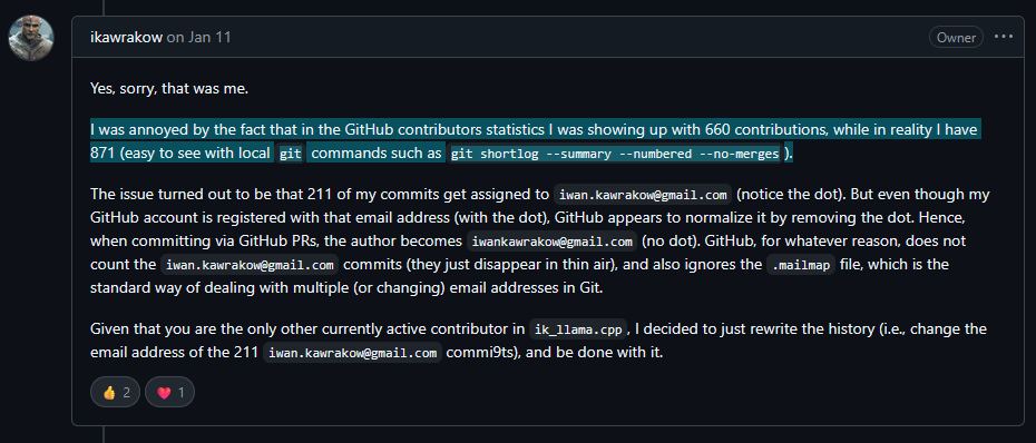 >>108480273He doesn't are about github numbers and he definitely wouldn't break everyone's git clones by changing master history just to pump those number up.