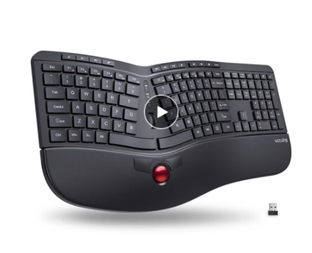 for me its VicTsing PC325 Wireless Ergonomic Keyboard with Trackball and Scroll Wheel USB 2.4G Quiet Split Keyboard with 16 Multimedia Keys...