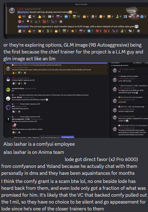 >>108486982>laxhar is on Anima teamI don't know about anything else in that screenshot, but the Anima team is me and me alone.