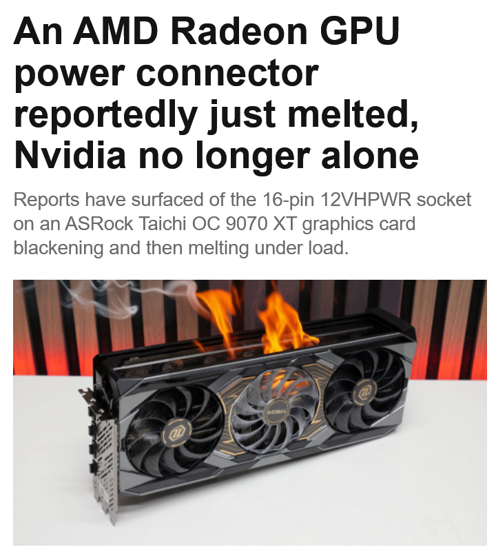 >>108492109>>108492111Lol AMD can do burning connectors too, Nvidia ain't got shit on us!