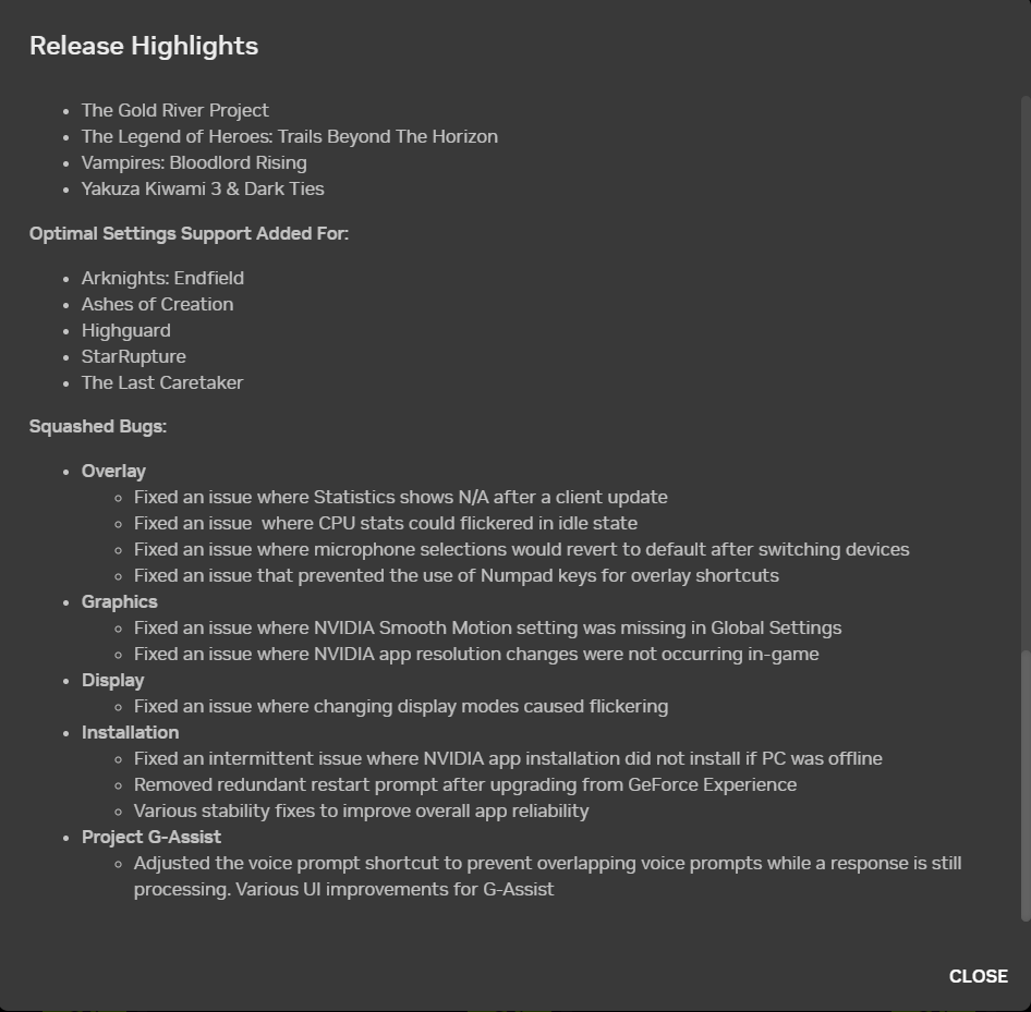 >>108492411I am opt-in, checked in the app but the app doesn't show me a update. Just tell me the full version under about in the app pls and I can get it from Nvidia archives.