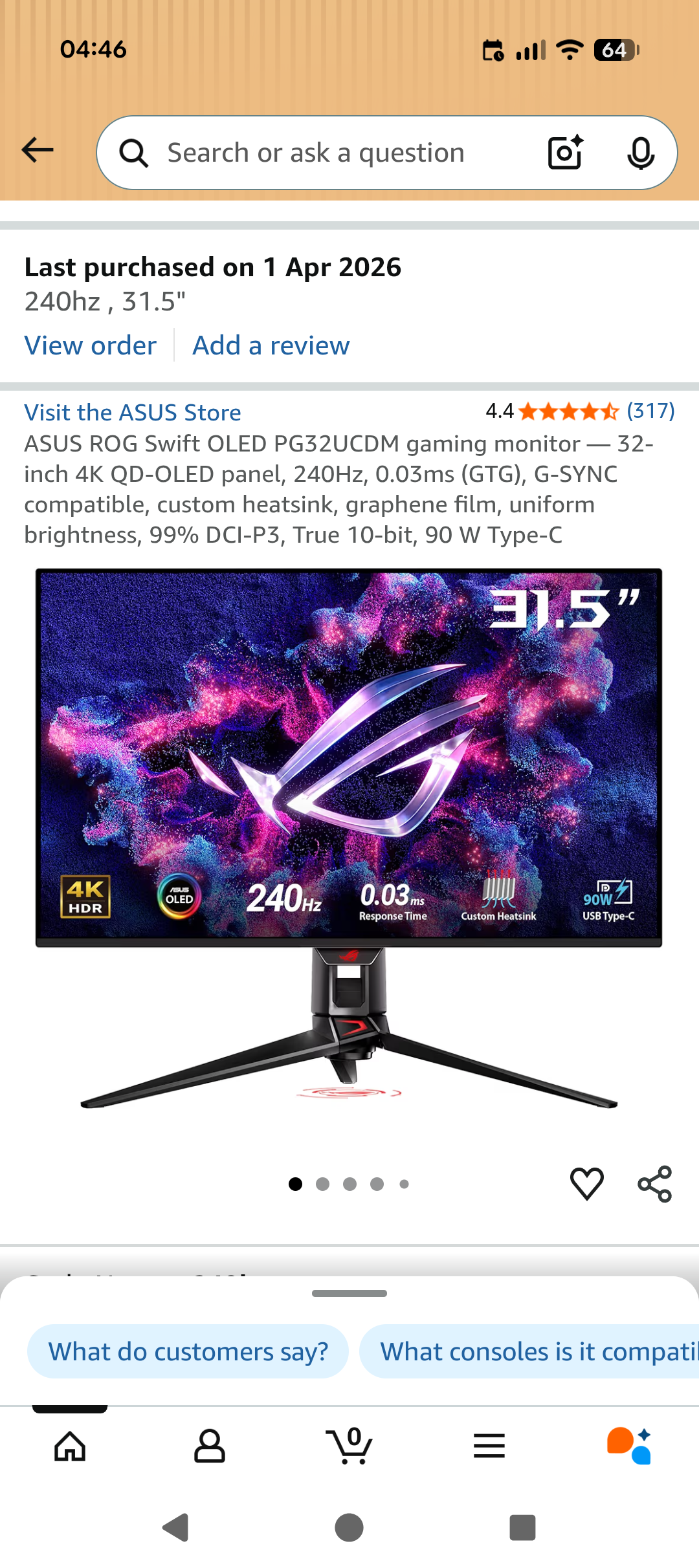 >>108497897Good deal for a 4K 32" OLED monitor.27" 1440p 360 Hz QD-OLEDs used to cost that much.