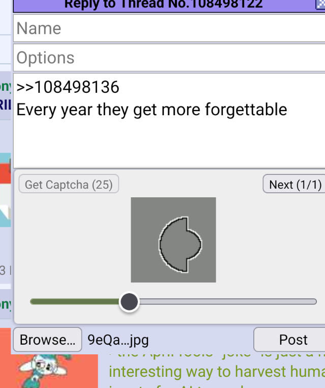 >>108498246>mfw all the changing captcha bullshit was just the buildup for a shitty april fools joke and tomorrow the captchas will be gone for good