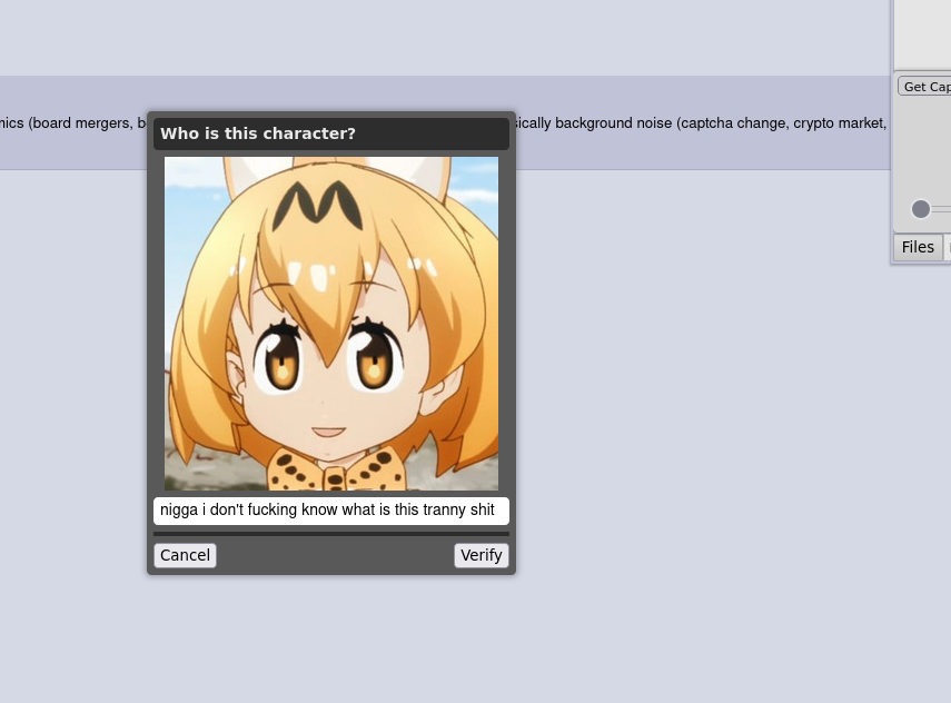 >>108499366>>108499406 Is me and I got normal captchas which failed the first two times despite entering them correctly.