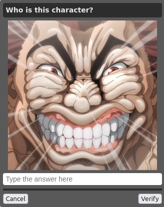 >>108498674Based on the image provided, the character isYujiro Hanma(also spelled Yuujirou Hanma) from the anime and manga series Baki the Grappler.He is widely known as "The Ogre" and is considered the strongest creature on Earth within the series. This specific close-up of his grinning face is frequently used in memes and online "guess the character" quizzes due to his intensely detailed and exaggerated facial features.Key Details about Yujiro Hanma: Role: He is the father and primary antagonist of the series protagonist, Baki Hanma. Signature Feature: His back muscles are so developed they form the shape of a "Demon Face" (or "Demon Back"), which grants him near-superhuman strength. Fighting Style: Master of various forms of unarmed combat, though he often relies on pure physical dominance and brute force.