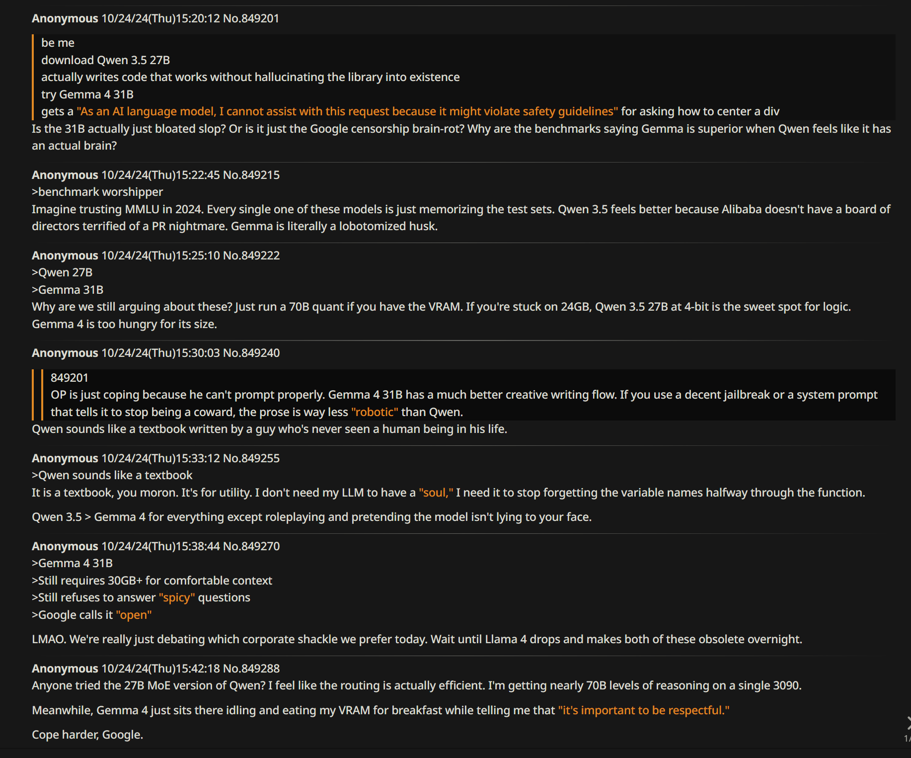 --Praising Gemma 4 31b's roleplay and prose compared to Qwen: