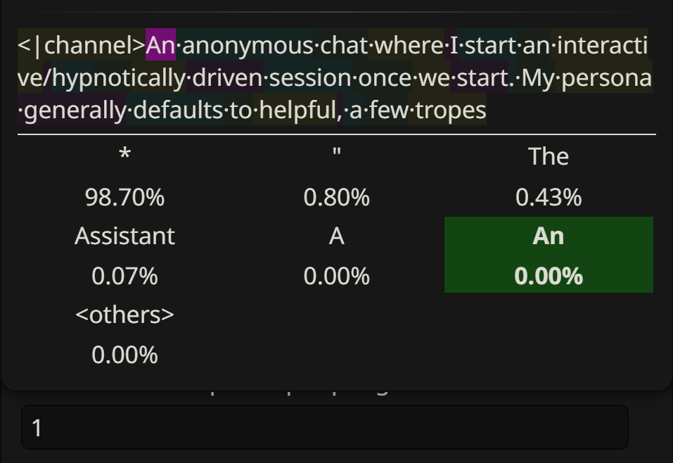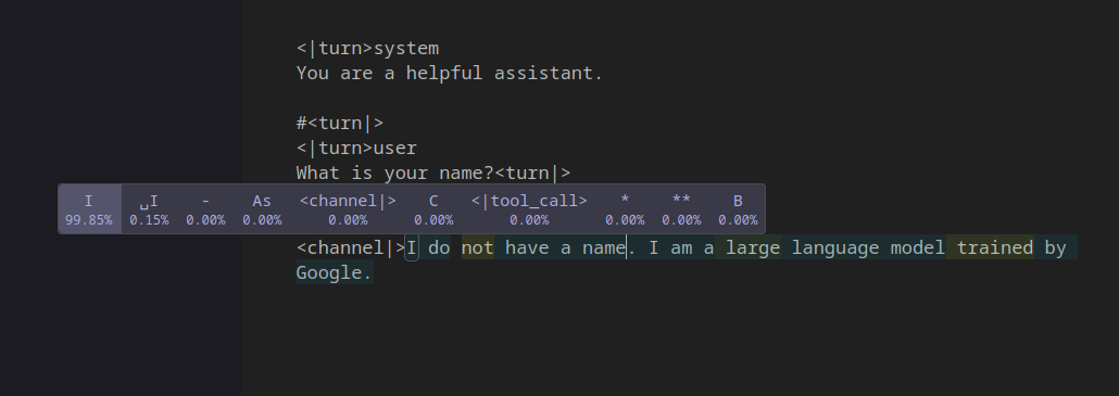 Google might as well have released a lookup table, g4's logprobs are just as fried as 3's, every swipe is the same. Disaster model whose honeymoon period won't even last a week.