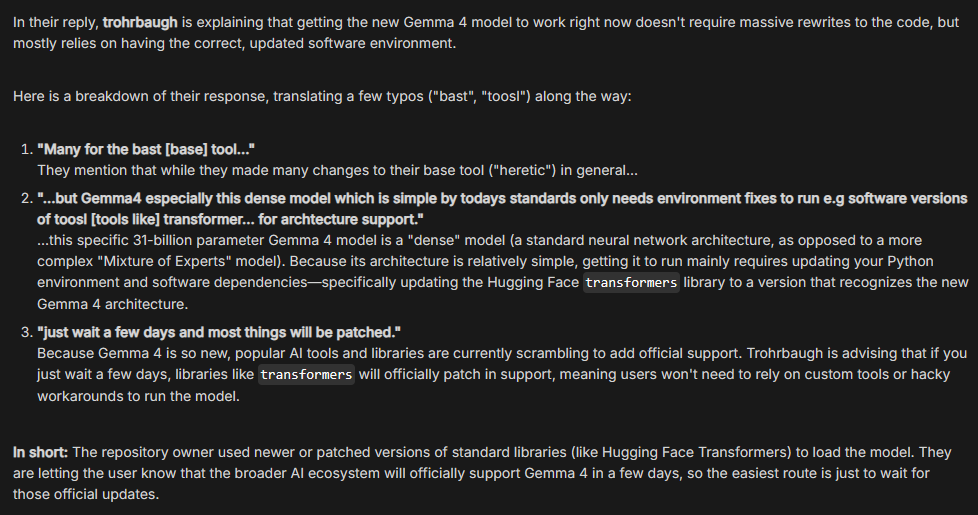 --Discussing Gemma 4 stability and formatting requirements for testing:
