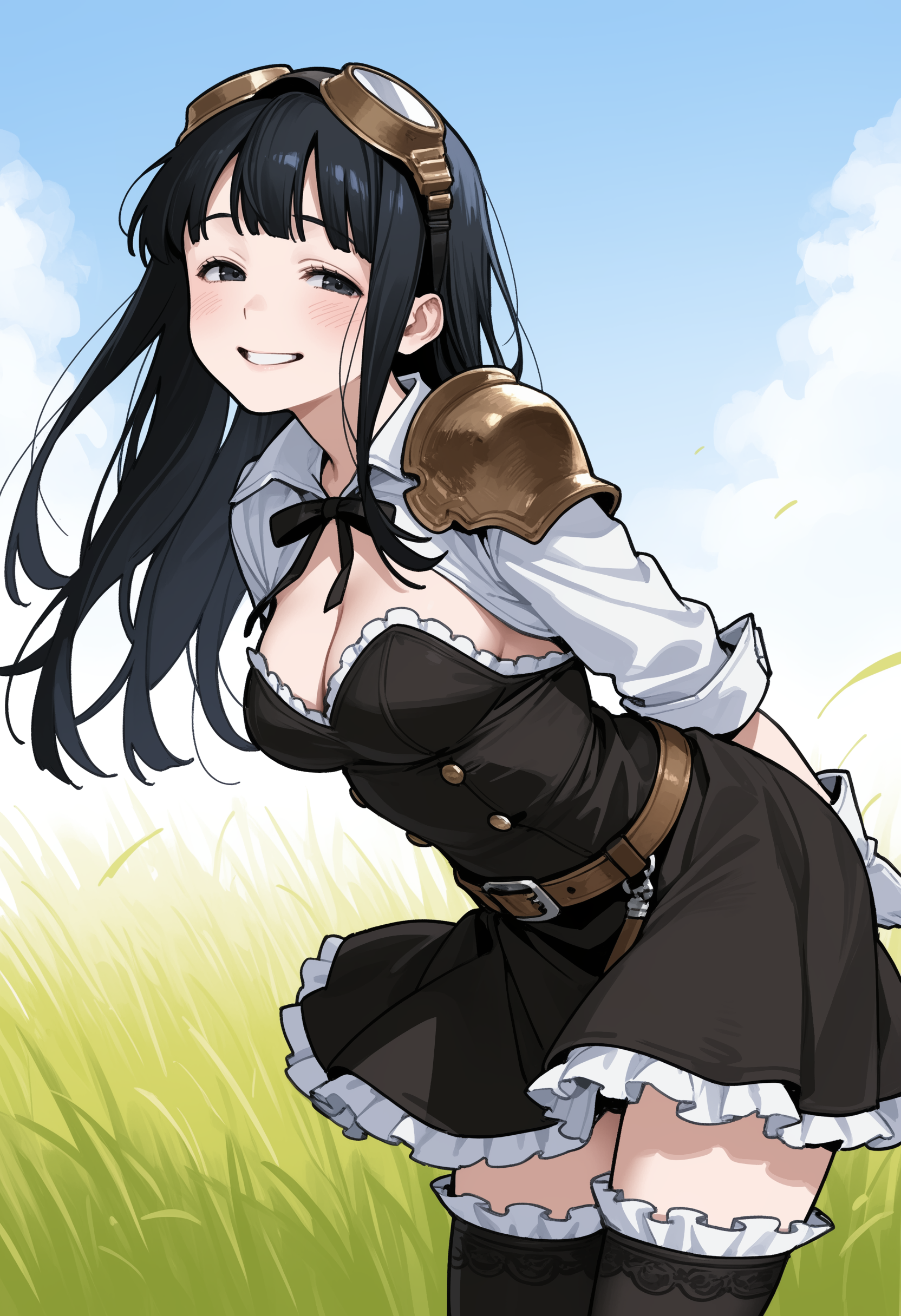 >>108520033first one with light bg was>has large upper body proportion that she is very confident about, lifting them from below while laughing at the viewer.and it just came out like that by chancedark bg:>Her smile becomes a grin, and her eyes squint further. Her eyes are still slightly open, looking at the viewer as if she caught the viewer doing something and is being smug about it. Slight hint of evil.But if I were using a tag based model I'd try half-closed_eyes shaded_face evil_smile or evil_grinmaybe a little bit of smug