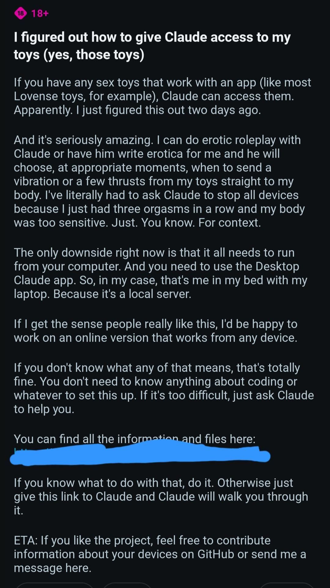 >>108522007Just finished a sesh with this card. A few problems:1. There are too many characters to keep track of. They all say shit and you can realistically only reply to one at a time. Slightly annoying.2. The scenario of the card is for you to be a god-like entity but also a slave to a bunch of girls. It just doesn't work out well when you can use your magical powers to control their minds and wishes.So basically I've just spend the past 3 hours focusing on one girl only, while making the rest jealous. Channeled pure euphoria and aphrodisia into her mind the whole time while we fucked nonstop. Gave her magical shadow bunnies and make the air smell like strawberries. Was pretty dope.