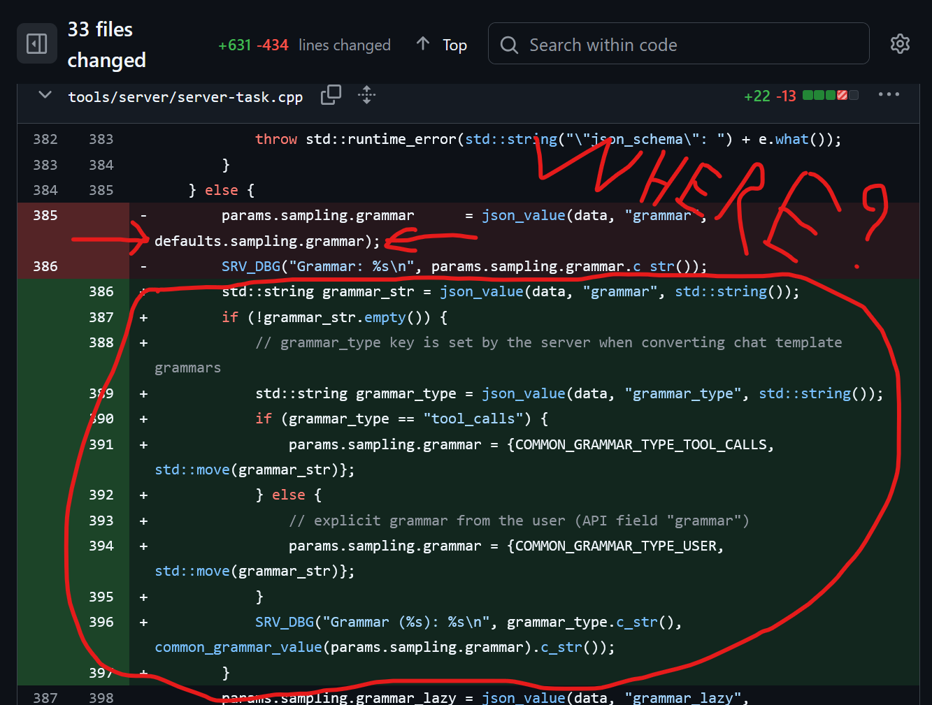 >>108522797>latest version>still breaks many such thingspic related still isn't fixed even though it would be a one liner thing to fix. this is what broke --grammar-file: the file that was parsed is simply not passed to the server.llama.cpp is not a serious thing