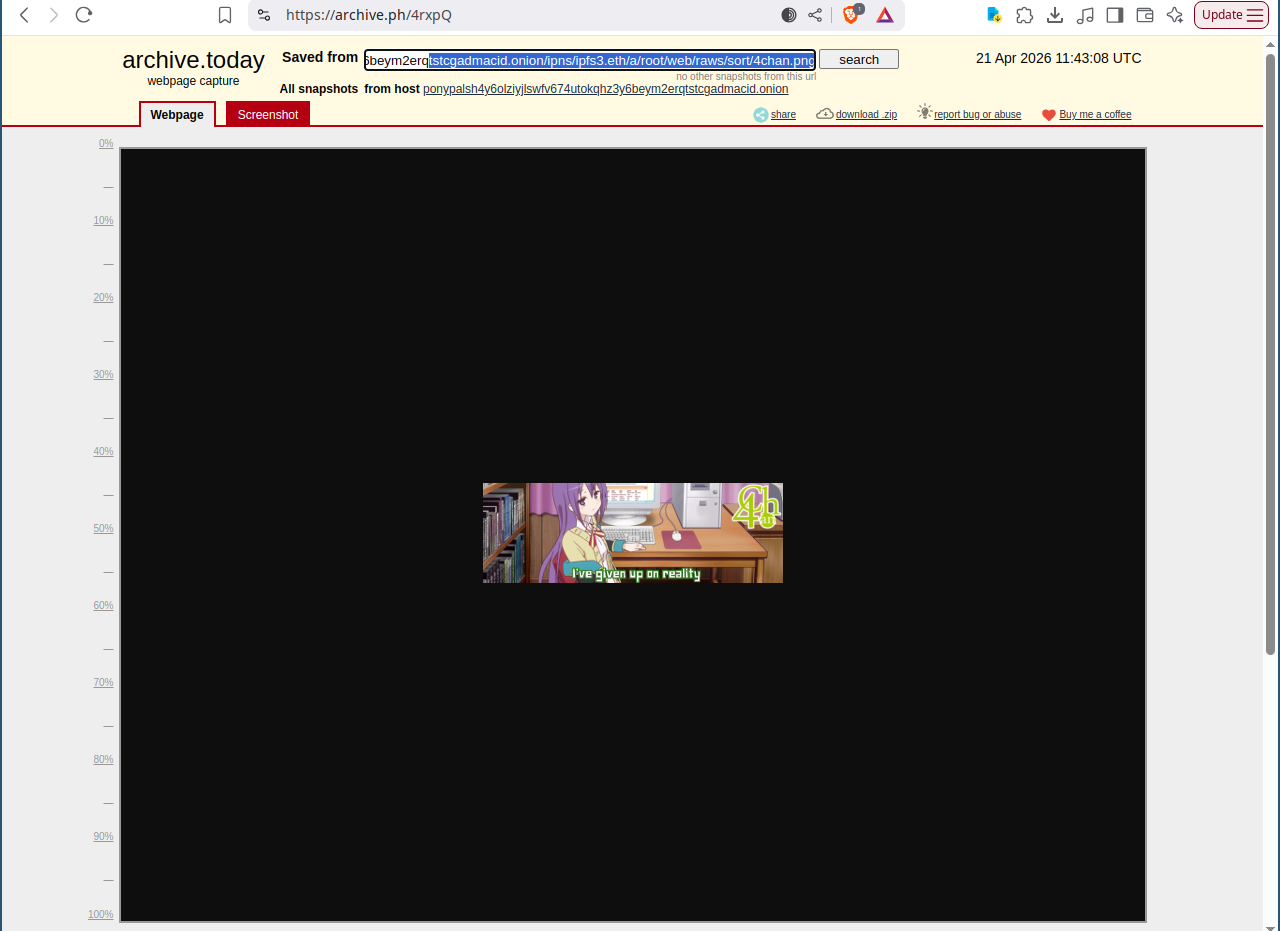 >>108633895>>108634530>OS level age verificationThe fact that the EU and the US have pushed/made these laws is disgusting.>>108615749>Then just move underground. The darknet is far better than the normalfaggot infested shithole that the clearnet becameOne problem with the darknet is it's less accessible. A positive of the darknet is there's less obnoxious JavaScript.>>108651718>every single damn IPFS gateway uses eth.limo to resolve .etheth.link seems to be a proxied version of eth.limo, so eth.link is somewhat useless. eth.sucks resolved it in the past, such as https://archive.is/2024.11.02-115239/https://ohlife.eth.sucks/ <s>but not anymore</s> https://ipfs3.eth.sucks/ redirects to https://web3.bio/ipfs3.eth?from=eth.sucks>There's an obvious conflict of interest with eth.limo being both the DNS resolver / ENS resolver and potentially the temporary host of the data.Another reason that ensdata.net ("END Data") should run a DoH API endpoint: they could just resolve stuff without ever hosting any of the target data. (Any public website that that can resolve .eth to a CID, and not just an ETH address like https://wutools.com/blockchain/ens-resolver , should do this.)>example: https://api.ensdata.net/vitalik.eth(Just realized today that Vitalik Buterin, the co-founder of Ethereum, has the "same" name as Vitalic, who created the album "OK Cowboy".)>>>108651898>I bet every IPFS gateway in the world uses retarded eth.limo to resolve .ethSeems that two years ago one of them used something else:https://github.com/deoidh/onion-ens-resolver>ENS Resolution: \ Receives requests to *.3th.ws domains \ Resolves ENS names to IPFS/IPNS content hashesAbout those two pics used as proof ( https://archive.is/4rxpQ and https://archive.ph/FuB0D ), that .onion site is used as a demo. The actual .onion site which has been used as an IPFS gateways for years is a different one; that change to resolving /ipns/something.eth will likely be added to that one.