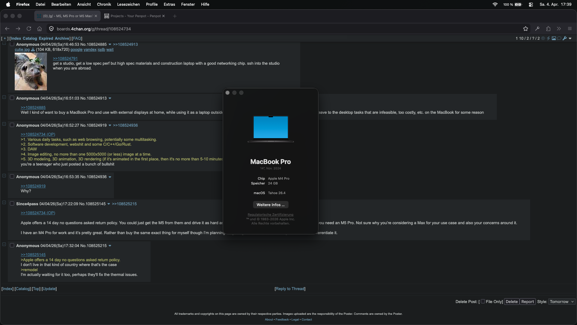 >>108525145>Apple offers a 14 day no questions asked return policy.I don't live in that kind of country where that's the case>remodelI'm actually waiting for it too, perhaps they'll fix the thermal issues.