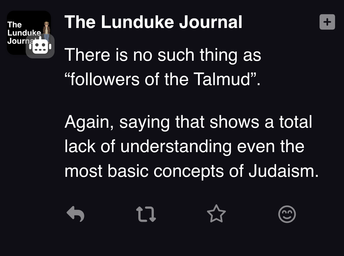 >>108527111>>108527060>"non-woke software">every example links to one specific twitter account>alright, let's check this guy from my fediverse server, maybe I'll give him a follow>first post is pilpul