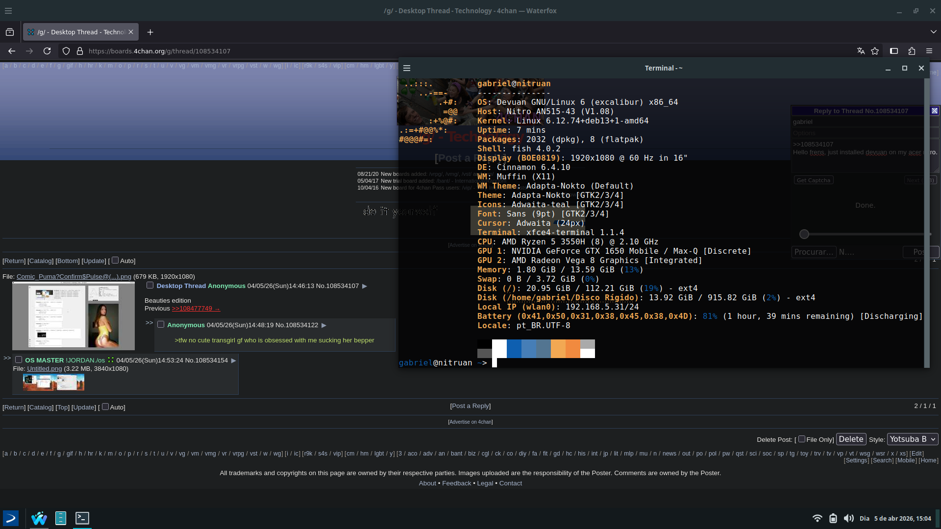>>108534107Hello frens, just installed devuan on my acer nitro.
