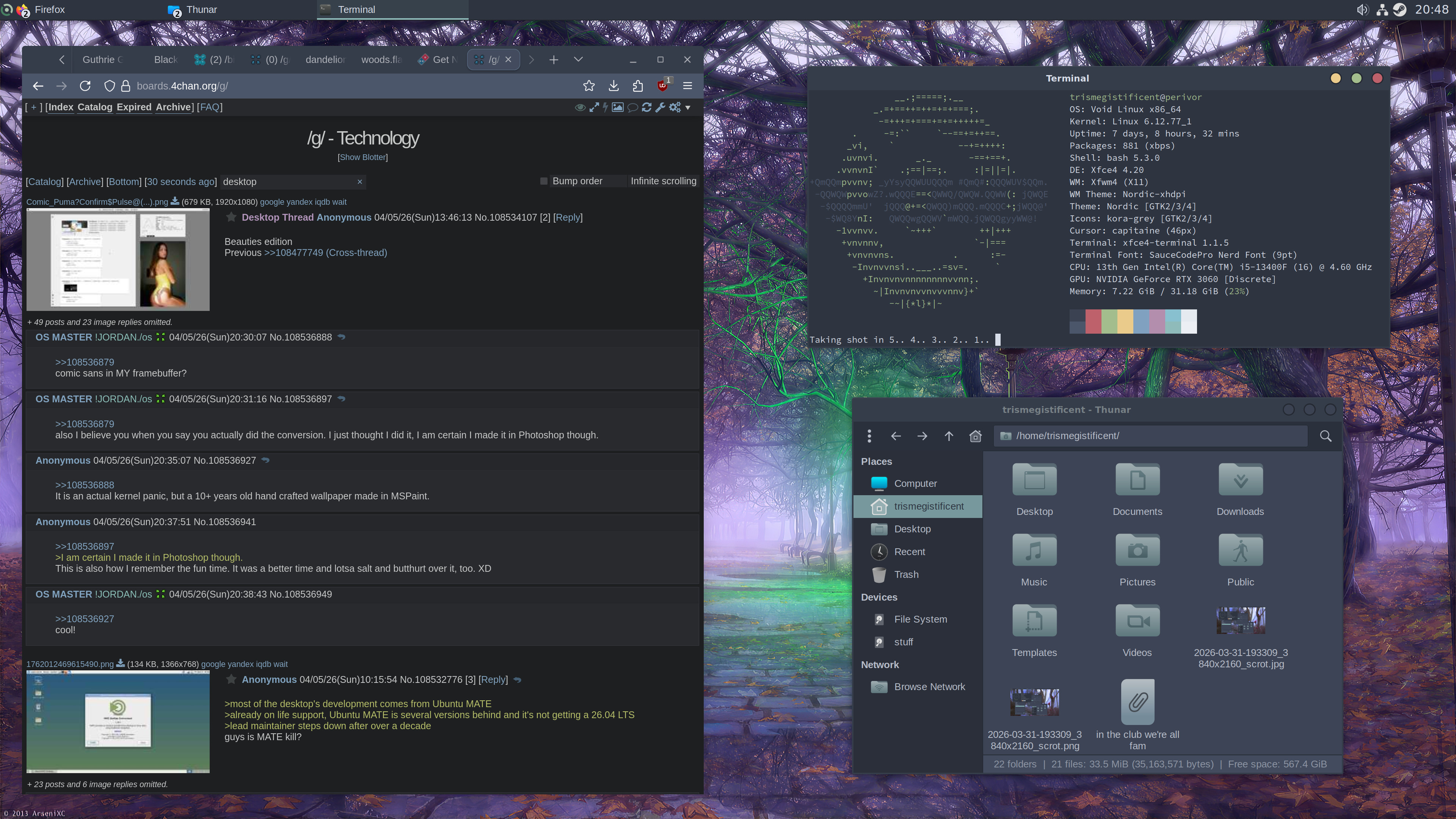 >>108534107FVWM2GoboLinux (2 weeks of my life trying to wrangle it, i would maintain and fix its issues myself if i knew how to but I have never done distro-level work in my life)Beach pic115M on boot3 gigs with X (including my dockapps), plenty of terminals open across workspaces, a browser (Pale Moon for the sane websites that don't into framework, Firefox for everything else, might try Waterfox because it sounds funny), and plenty of XFE windows open tooOver the course of 3 years, I distrohopped across:DebianAntiXMX LinuxAlpineDebianAlpine againBedrock Linux (with Alpine as the base strata, Arch and Debian)Devuan (I stopped using Windows entirely here)Now I'm here.Conclusion?Every single Linux distribution is the same and I don't like how userspace breaks userspace. Gobo is great but has a glibc from 2019. AppImages fail at life because they need glibc to work. Flatpak doesn't work on here either for some reason. I am reserved and have resigned to seeing how far I can make it with programs that may or may not be force obsolesence'd in the future.I don't like forced obsolesence. People seem to be changing things for the sake of changing things at the expense of the user.I wanted to compile a newer Mesa, but that means pulling in Rust and dependency hell. I'd have to recompile my entire system. And I bet it'd just make everything slower on my hardwareo well atleast i enjoy where i am right now :O