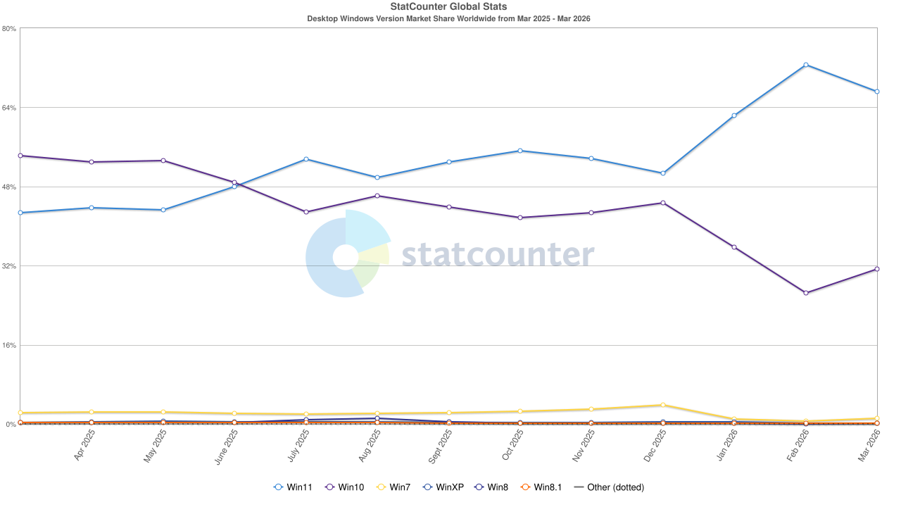 >>108547025More like 2/3 of the Windows population. Like 5% moved back to Win10 last month.